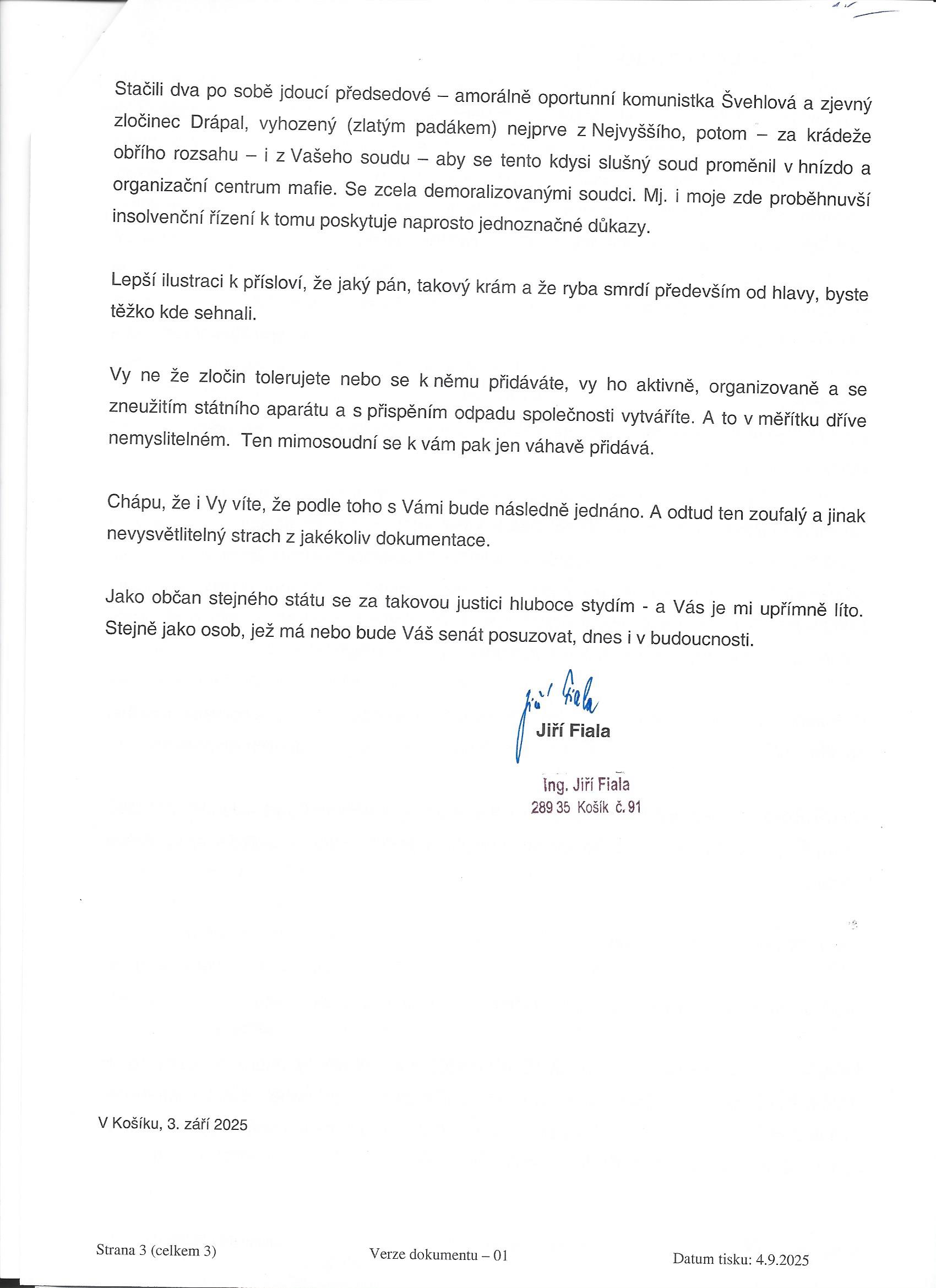 Je proto nutno zůstat u zjištění, že 4. mail nebyl ohledně autorství nikdy ověřen, natož prokázán a že minimálně pokud jde o tento mail, jeho autorství bylo obžalovanému přisouzeno zcela bez důkazu, což svědčí hlavně o podjatosti a neprofesionalitě soudů obou stupňů. Obžalovaný byl tedy – v tomto bodě – bez ohledu na právní náhled a posouzení – odsouzen za něco co vůbec neudělal a co mu nebylo nijak prokázáno (vyjma zbožného přání členek senátu).