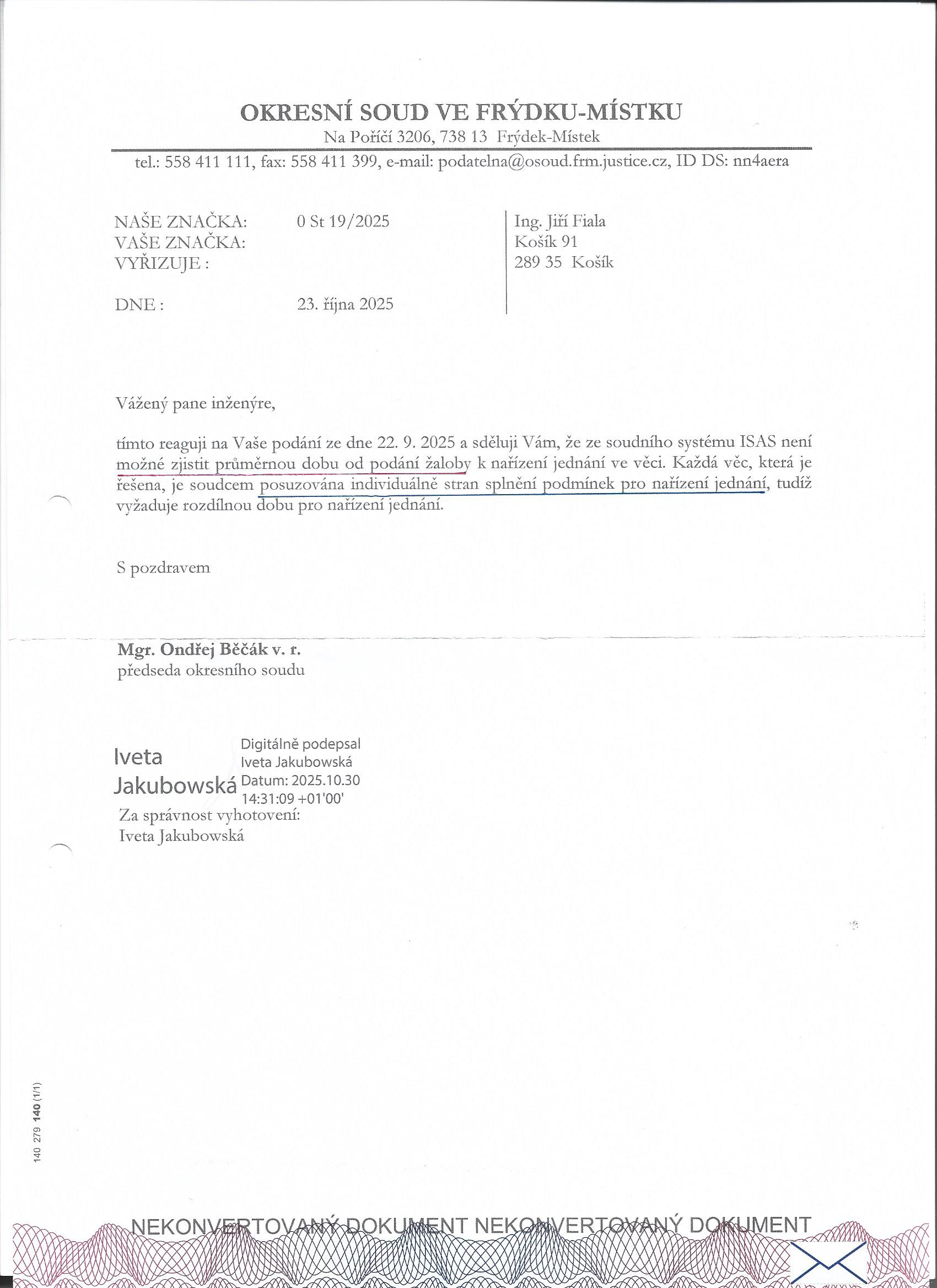 A - k čemu je informační systém, jenž ani takto zásadní údaje - jako je doba od podání k projednání věci - "nedokáže zjistit" ??