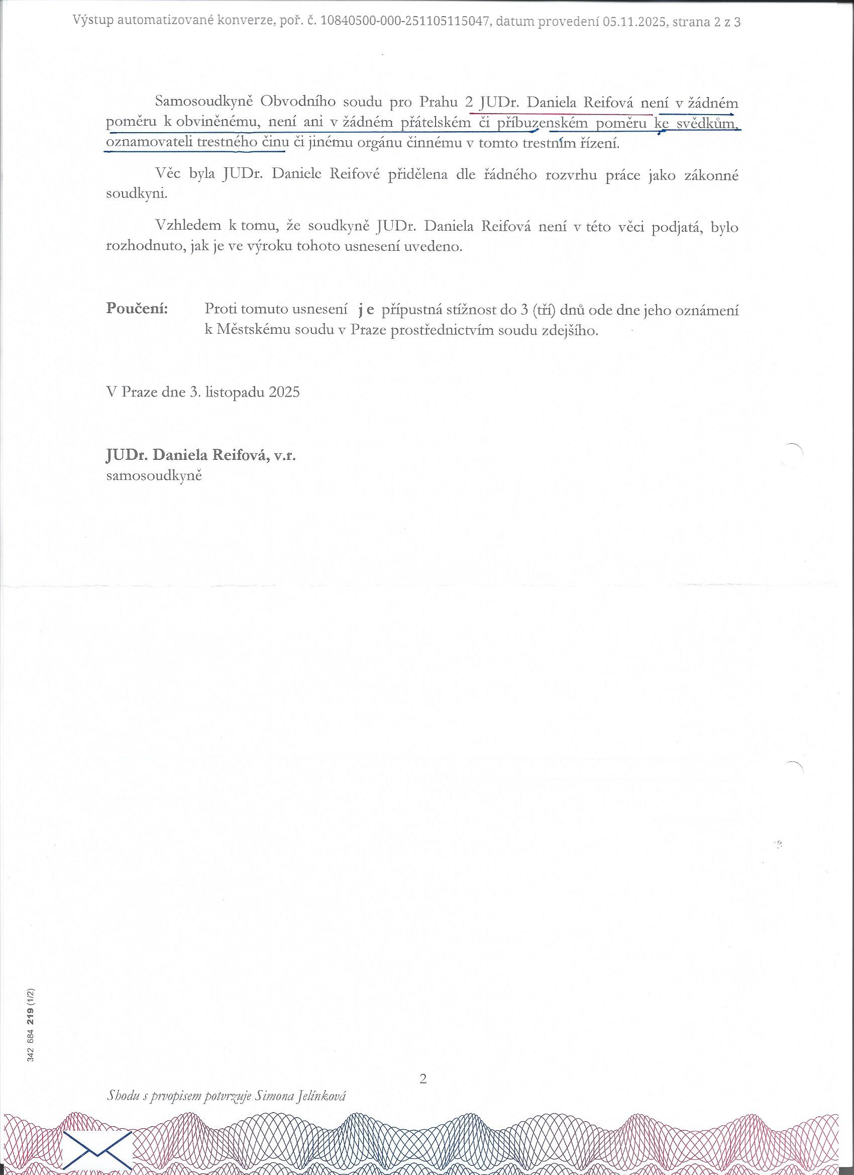 Výše uvedeným usnesením soudkyně Reifová prokázala, že je zcela mimo rámec prosté logické úvahy, které jednoduše není schopna a že se jedná jen o další intelektuálně i mravně bezcennou figurku, která jede podle předem připravených not s cílem uspokojit svoje mafiánské kolegy tak, aby jejich ego ničím neutrpělo a soudržnost justiční mafie zůstala zachována - a nepoškodit si kariéru, ač jejím zákonným cílem je hledat obecnou spravedlnost a umět ji aplikovat v zákonných mezích, především pak znát procesní náležitosti jednotlivých úkonů, vědět, co znamená jakýkoliv úkon od podjaté osoby a jak lze použít dokument získaný procesně nepřípustným způsobem.