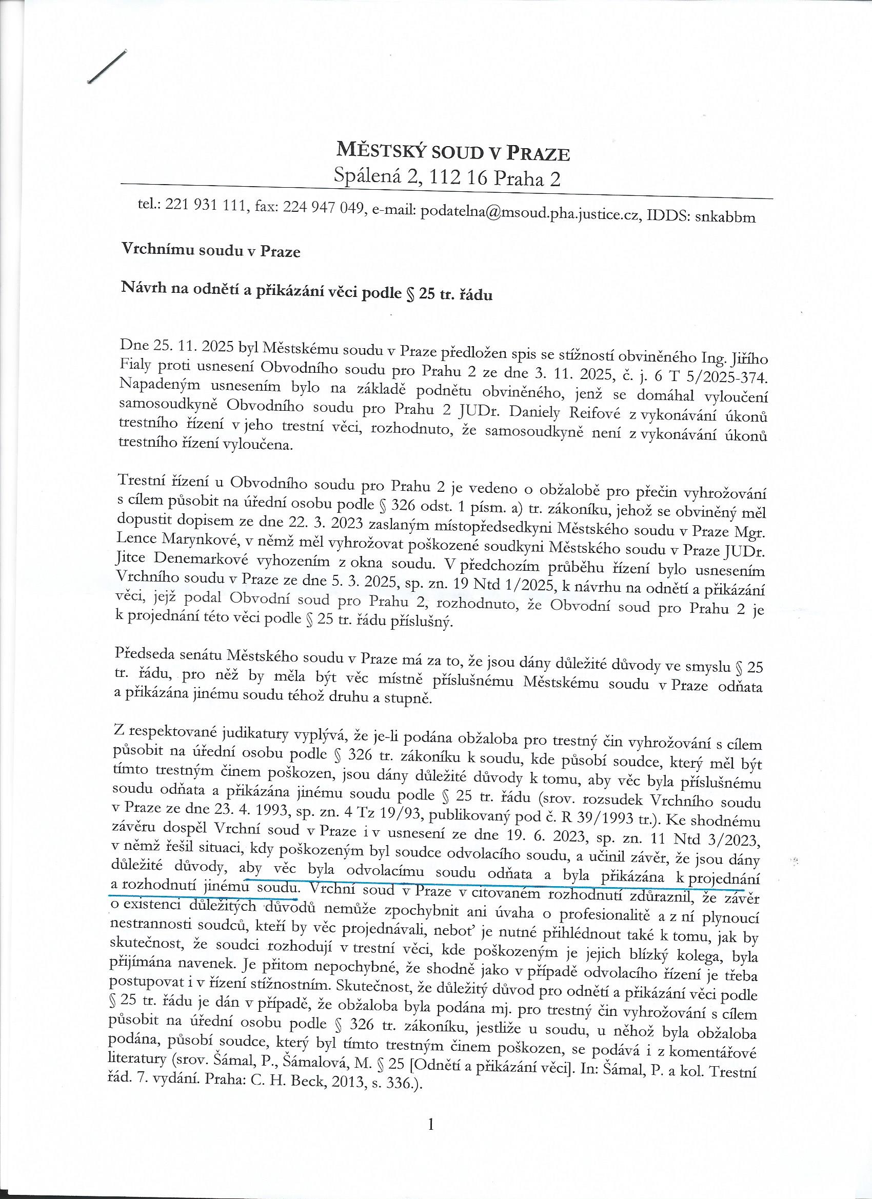 taky to nechtěla soudit. Vrchní soud jí sdělil - v rozporu s platnou judikaturou - že musí. Asi nechtěli případ městské psychopatky vynášet někam na venkov. To tak - aby ještě i tam věděli, kdo může na Městském soudě v Praze soudit...