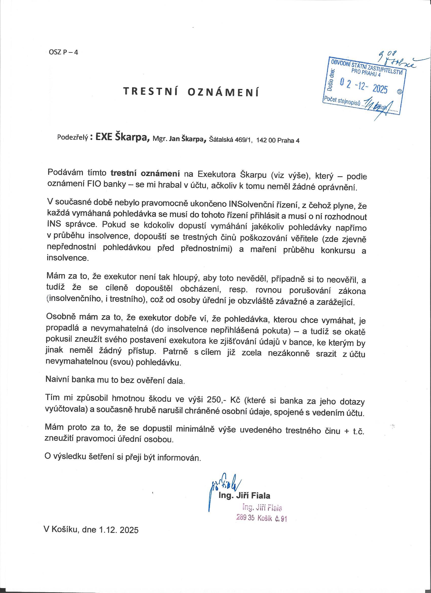 Ani exekutor najednou přílišnou sdílností neoplývá... Šikanovat ostatní, na to je užije.