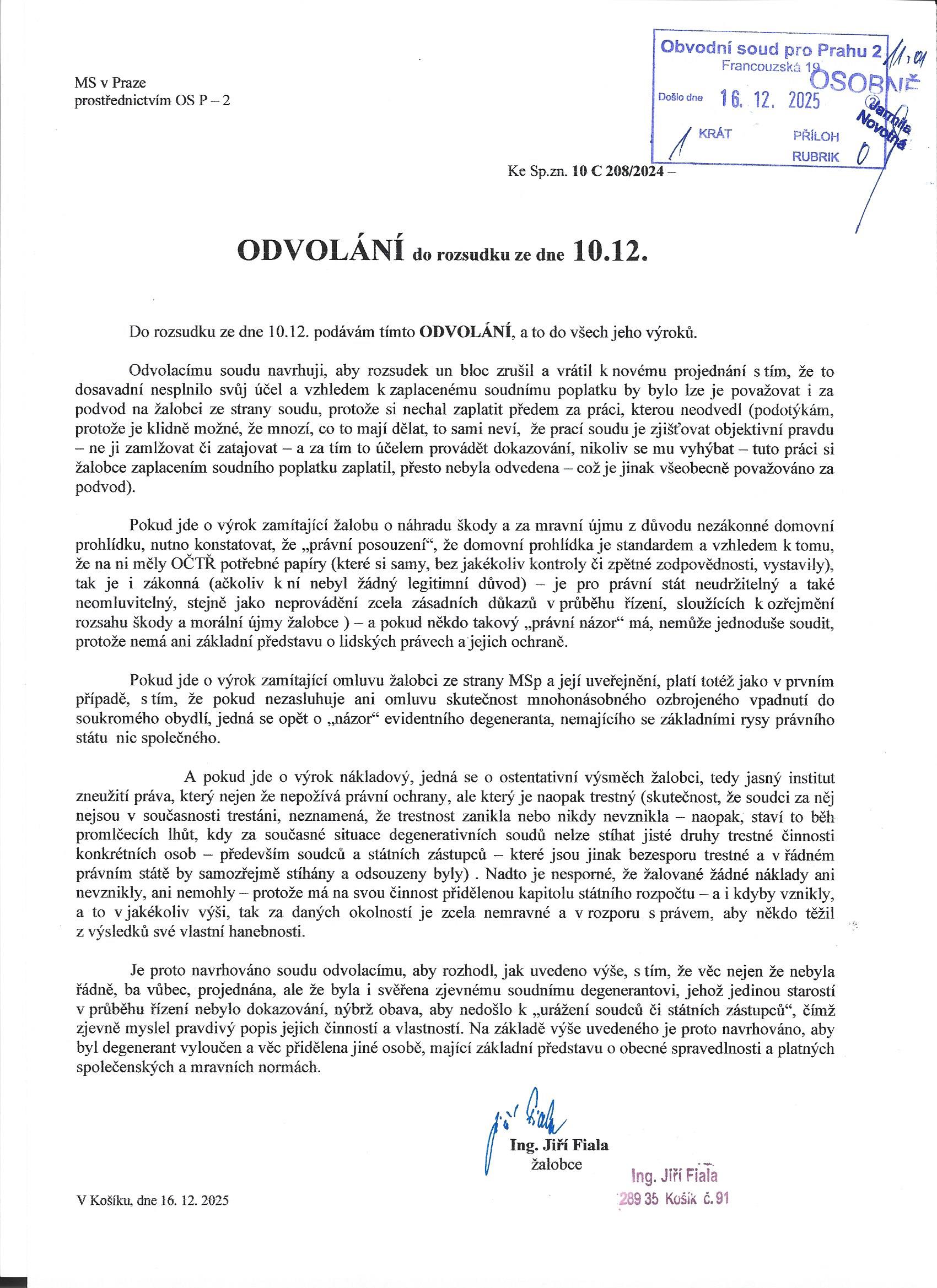 ODVOLÁNÍ ve věci domovní prohlídky specifikuje a popisuje kvality zdejšího degenerativního soudu :