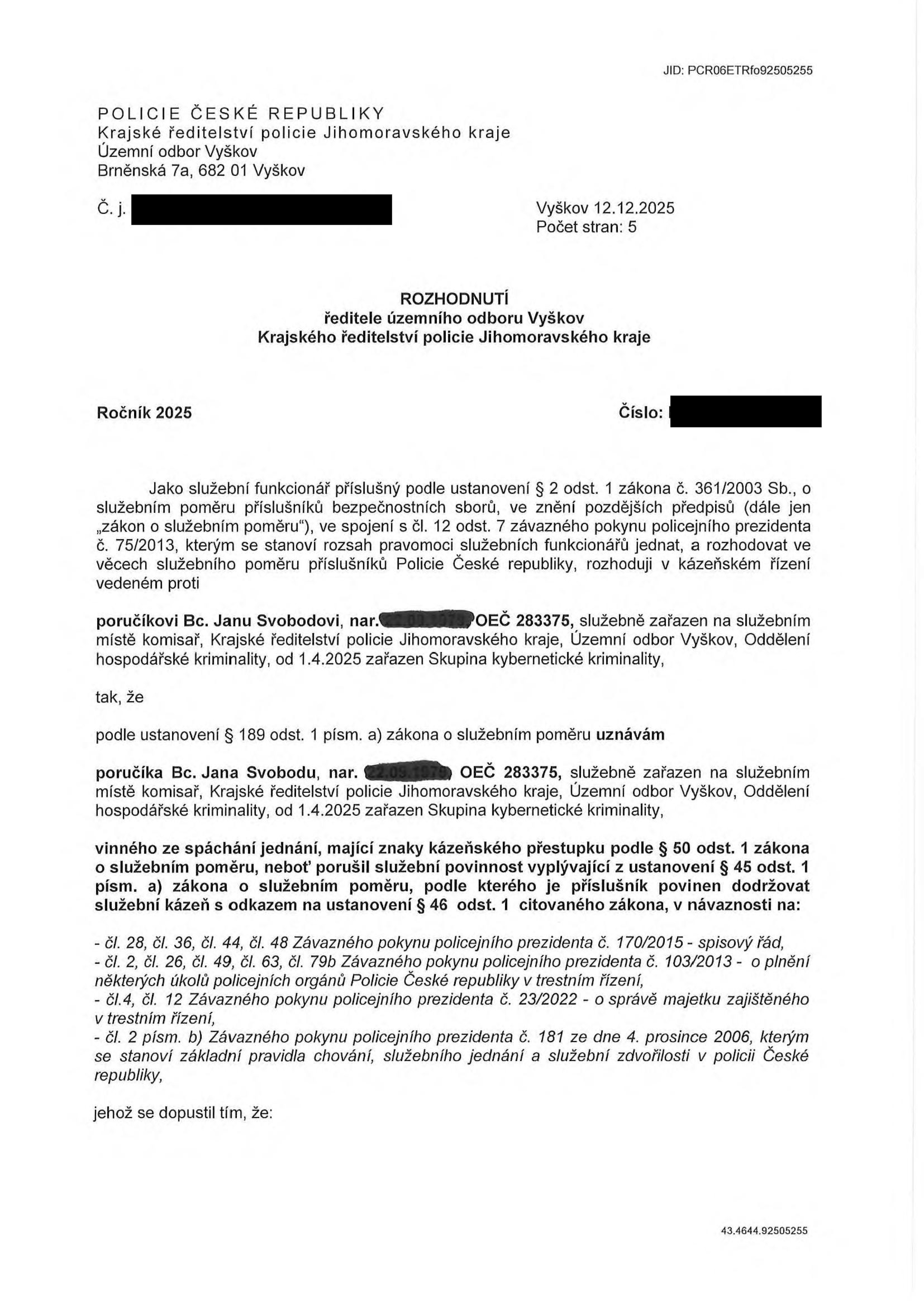 Když tohle všechno prasklo - a to až podáním obžaloby, protože státní zástupce Šrámek, v jednočinném zločinném spolčení s fízlem Svobodou, všechny stížnosti zamítal a tvrdil, že je všechno v nejlepším pořádku - tak nadřízení fízla mu vystavili něco jako důtku, tedy za mnohačetné podvody z postu úřední osoby, které by správně vydalo nejen na okamžité zbavení funkce, ale také na několik, ne málo, let kriminálu - a něco málo mu srazili z platu (konkrétně 10% za dva měsíce - odhadem nějakých maximálně 20 tisíc). Přitom jenom náklady za trestní řízení, které musí každý odsouzený zaplatit, jsou 10 tisíc. Pokud by ho soudili, náklady by rychle naskákaly do statisíců, pokud by ho zavřeli, do milionů...