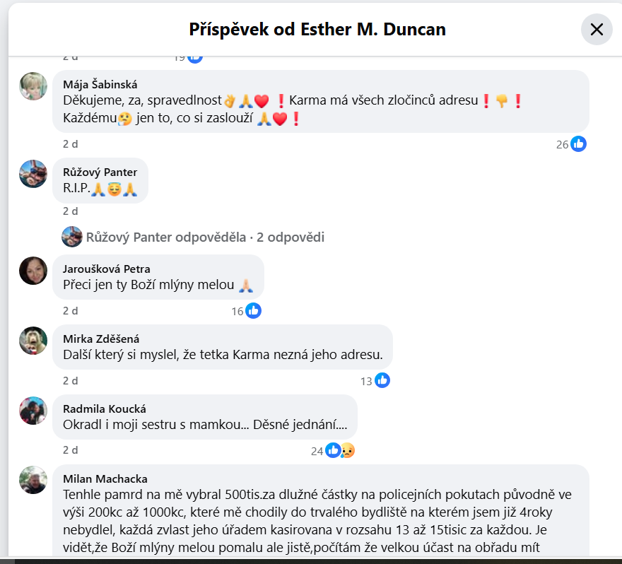 Spolu s zločinnou Benešovou, která je v tomto mafiánském počínání trvale kryla a bezpodmínečně chránila - budiž jim všem ZEMĚ TĚŽKÁ a pekelné plameny věčné a hodně pálící.