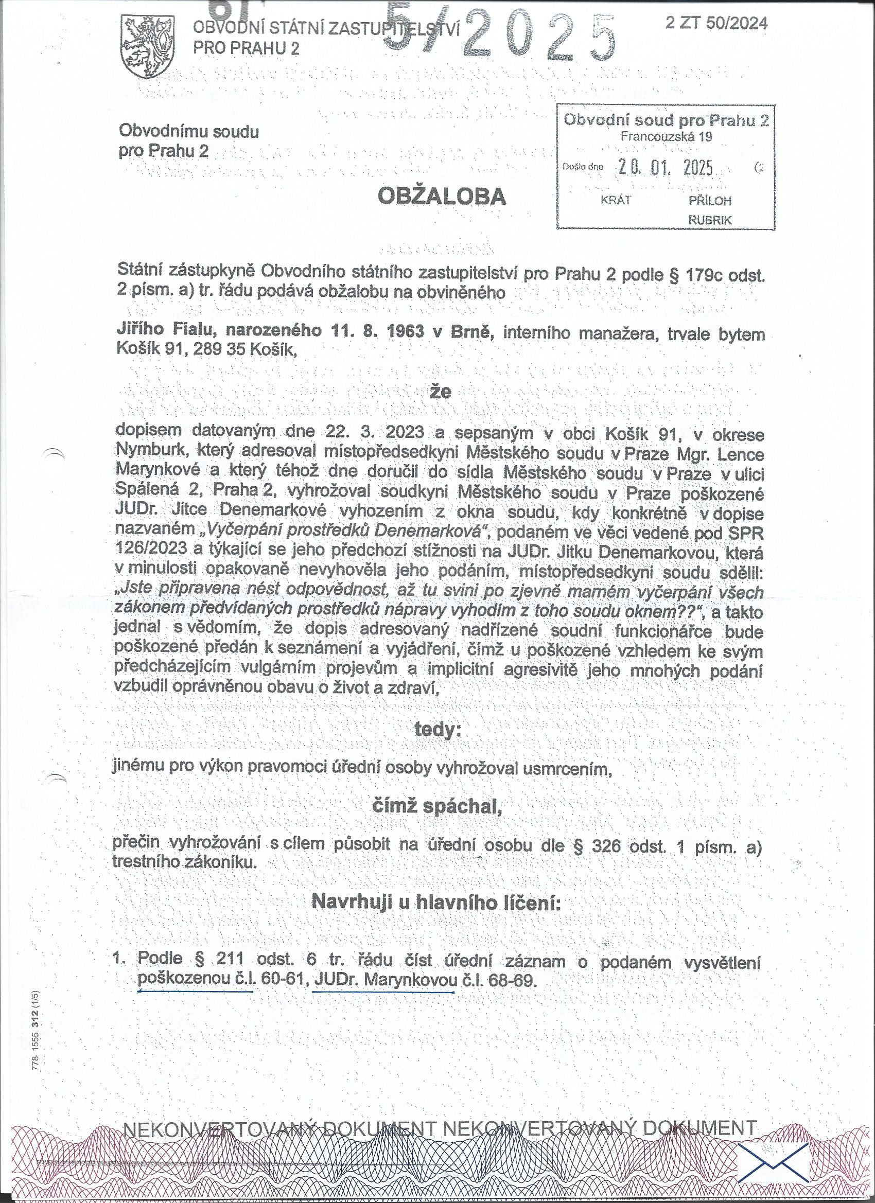 Trestný čin předpokládá úmysl nebo nedbalost a zaviněnou škodu – tady nic z toho nelze dohledat. Úmyslem bylo zastavit naschvály a šikanu ze strany Denemarkové, které vedení soudu dlouhodobě neřešilo (úmysl tedy zcela legální a legitimní) – jako ostatně neřeší nikdy nic a je tam naprosto k ničemu. Že by někdo napsal dopis z nedbalosti, je holý nesmysl.