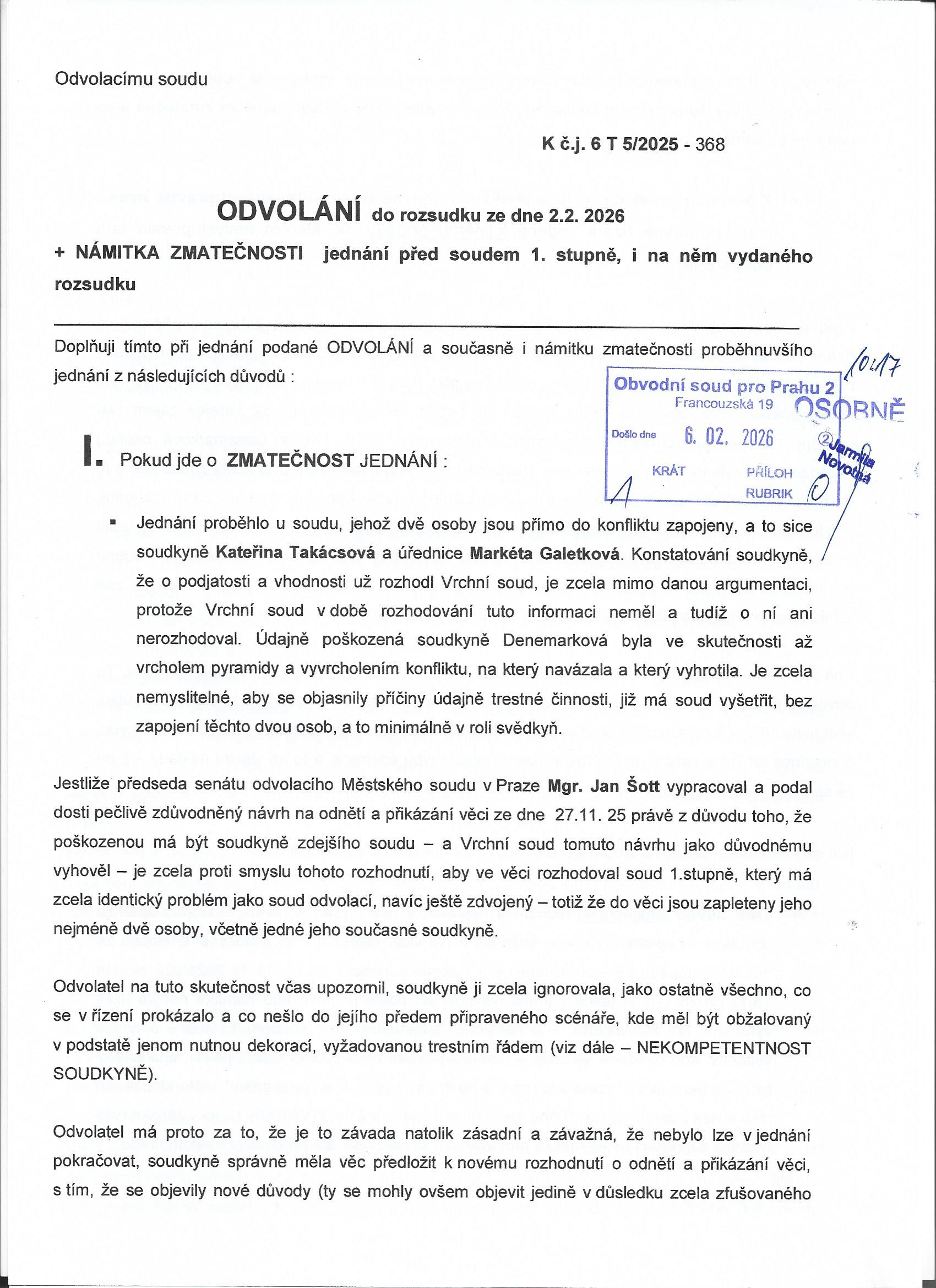 ODVOLÁNÍ do rozsudku ze dne 2.2. 2026