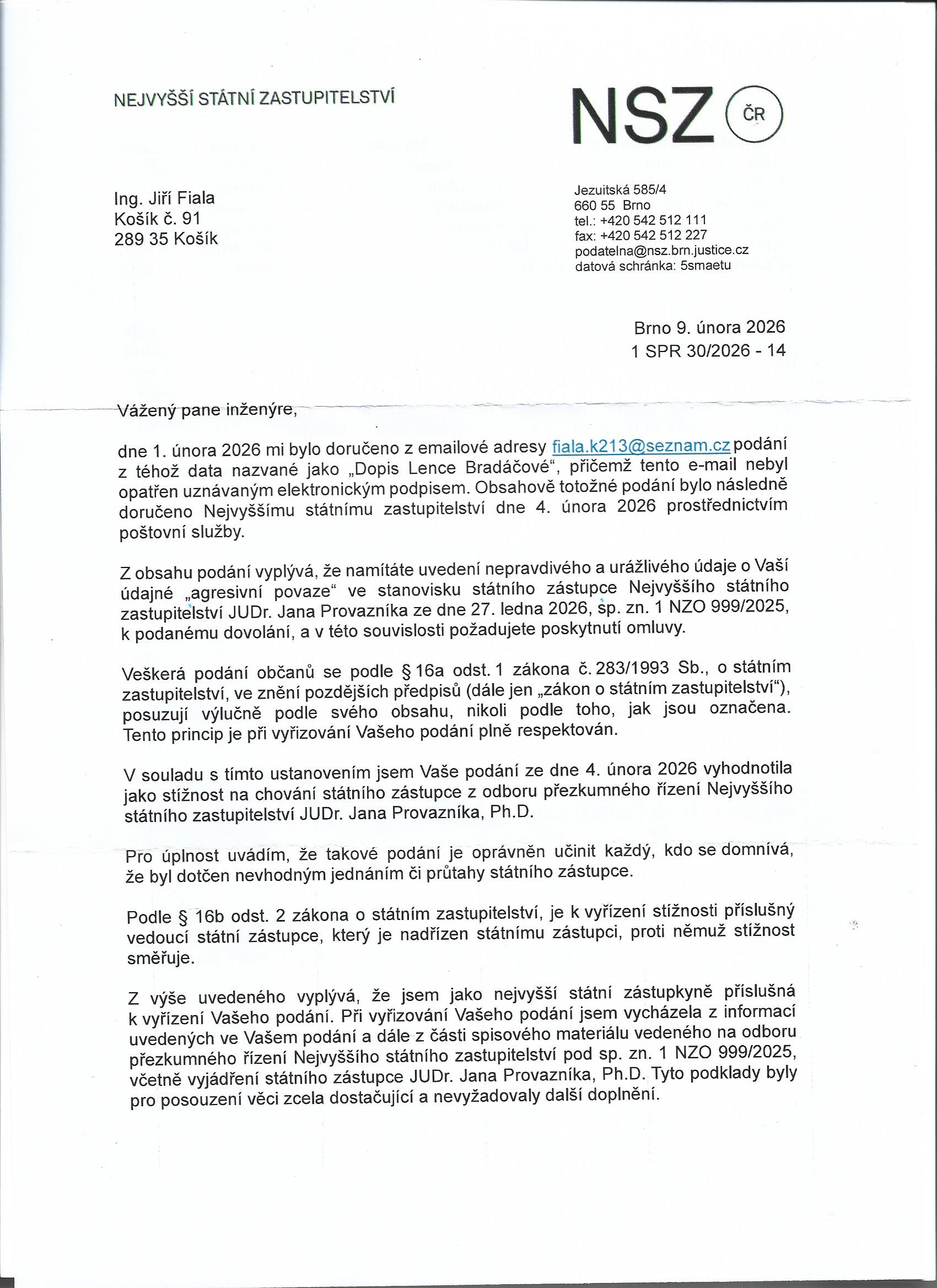 Budu rád, když se vyjádříte alespoň k tomu, co máte dnes na stole (a k čemu mělo stanovisko směřovat) – tedy prokazatelné krytí trestné činnosti křivého svědka ze strany OSZ v Příbrami a KSZ v Praze.