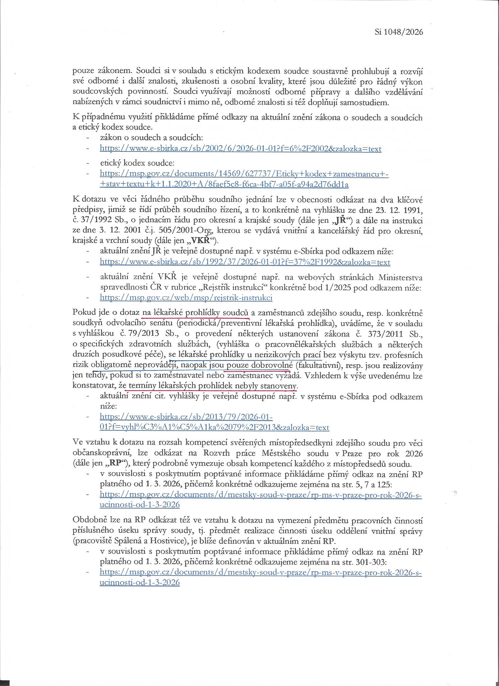 Předsedkyně soudu dopis nesesmolí, ale má na to aspoň lidi. Takže jsme se věcné odpovědi konečně dočkali. Vyplývá z ní, že o zdraví soudců nemá státní správa soudu ani mlhavé, natož konkrétní představy. Co s tím ?