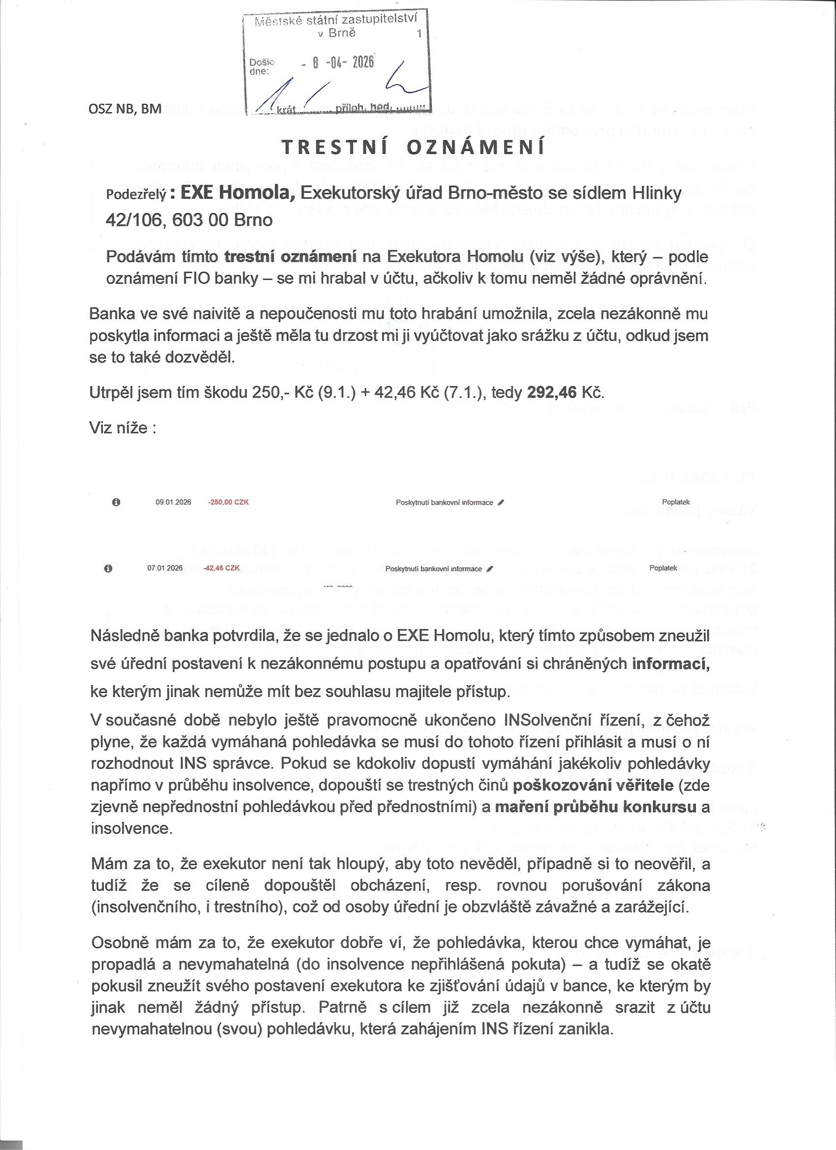 Nadržování a zneužití pravomocí spolu s nepřekažením možného pokračování v trestné činnosti tedy 329 odst 2 na neznámého pahatel z řad očtř oznámeno nebude? LS
