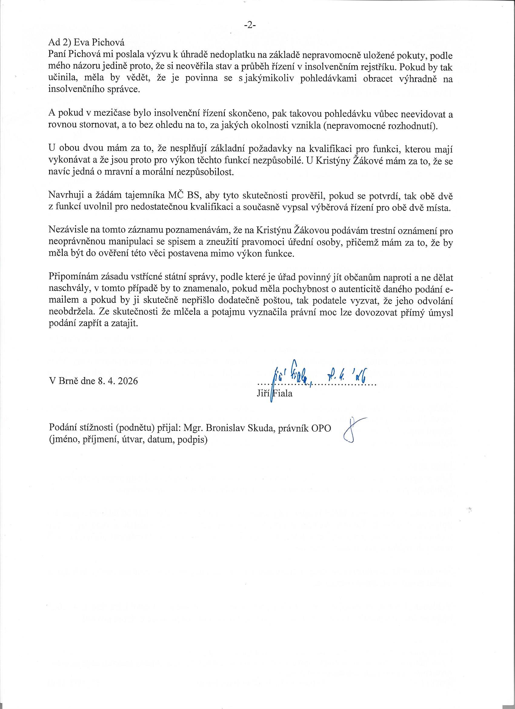 Překvapilo mě i to, že tahle třicetiletá vedoucí právního odoboru je vedoucí té vedoucí, co vede přestupkovou agendu, a tedy i vedoucí té zlodějce, co krade úřední poštu.