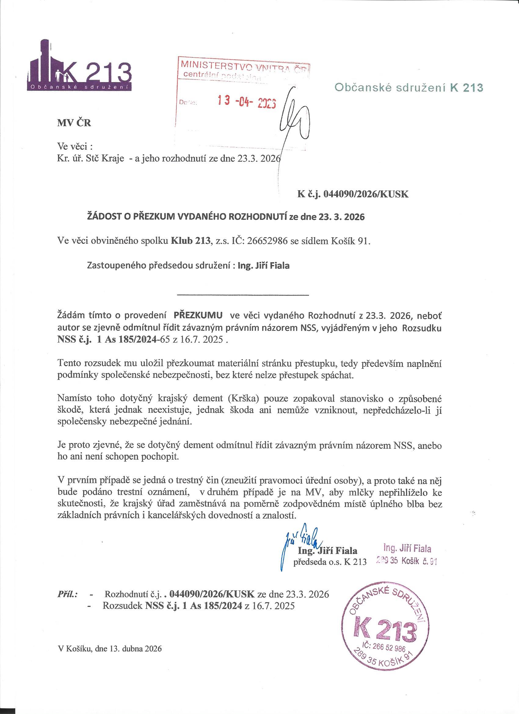 Na Kršku bylo proto podáno jak trestní oznámení, tak žádost o přezkum, v tomto směru jako první zareagovalo MV, tušíc průšvih, a spis si k přezkuimu NEPRODLENĚ vyžádalo.