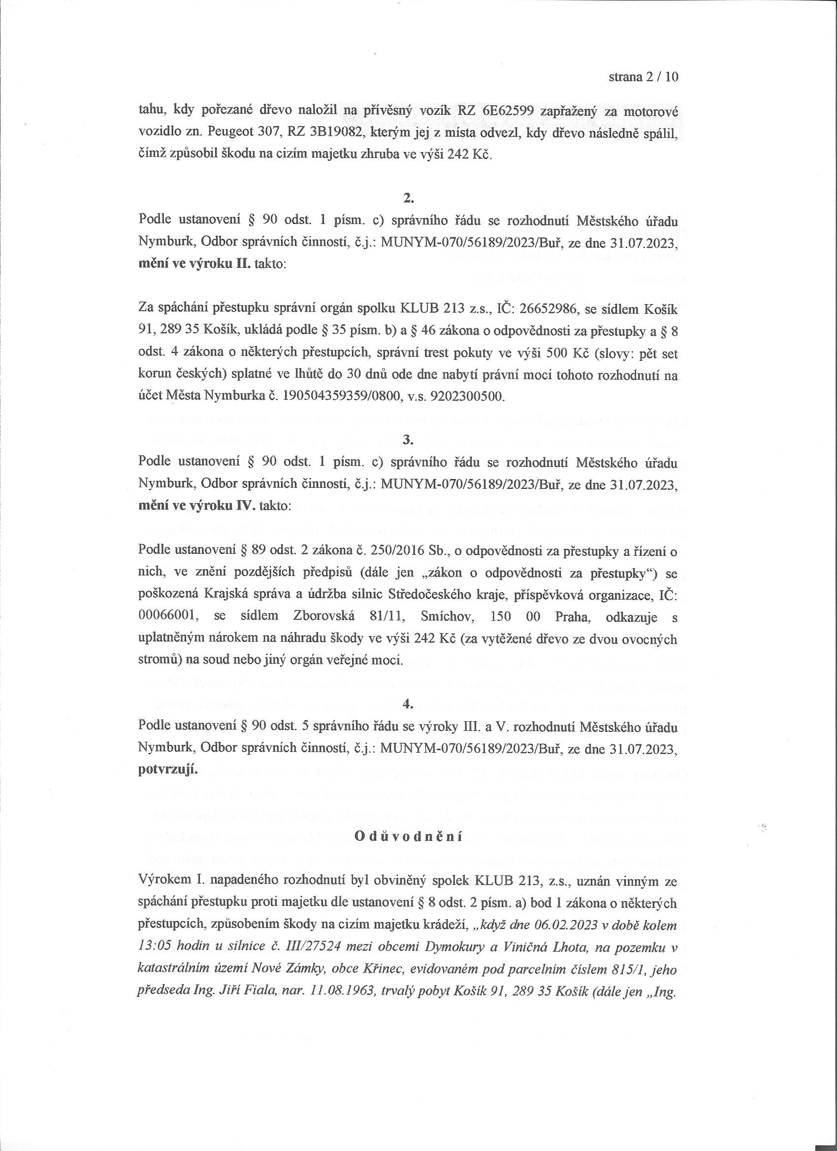 Strach z následků rozhodnutí NSS, rušícího a správně definujícího původní rozhodnutí Krajského úřadu udělit našemu sdružení pokutu za údajnou krádež dřeva, když odklidilo od cesty provoz ohrožující dřevěný odpad, jako diletantské a protispolečenské, spolu s vrozenou jednoduchostí vedly nejspíš vedoucího odboru přestupků k riskantnímu kroku : ROZSUDEK NSS PROSTĚ IGNOROVAT.