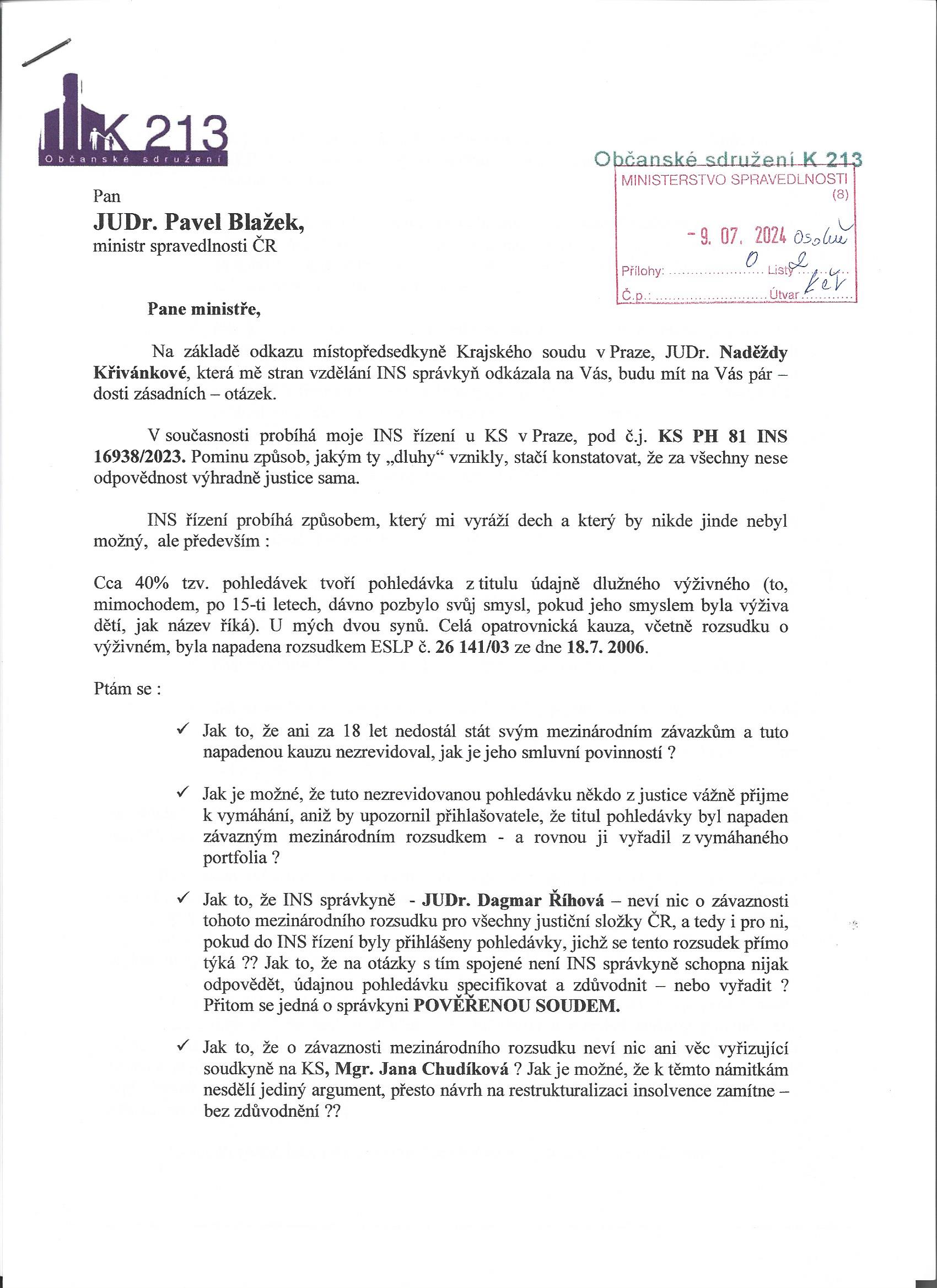 Dopis ministru spravedlnosti, Donu Pablovi. Nesete za to přímou odpovědnost ! I trestní !