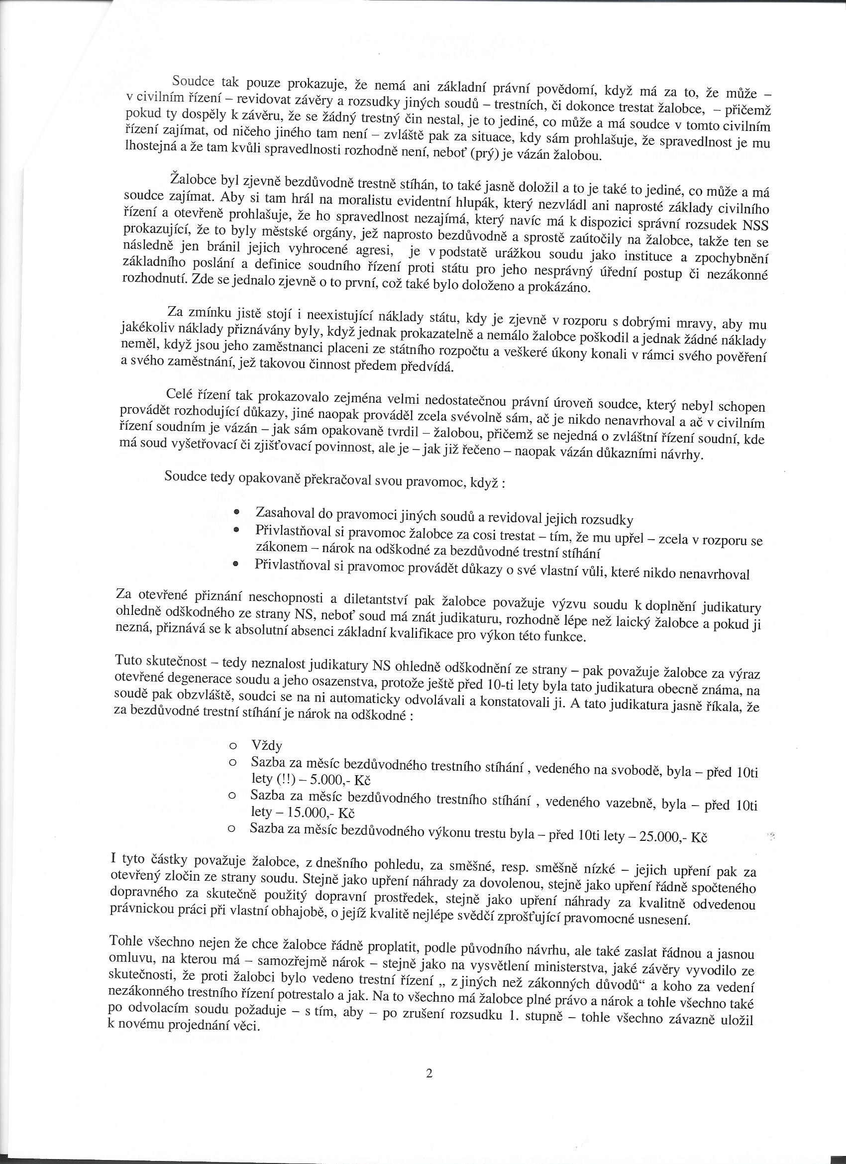 Podívejme se, jak soud na Praze 2 "odškodňoval" zjevně bezdůvodné trestní řízení, jež se konalo u soudu v Nymburce loňského roku - a skončilo zprošťujícím rozsudkem, resp. usnesením, že věc se postupuje městskému úřadu pro možný přestupek (a ten následně rozhodl, jak už to bývá po velkém průšvihu, že věc není ani přestupkem - přesto rok a půl zaměstnávala orgány k tomu určené. Tedy, přesněji, určené k potírání trestné činnosti, nikoliv k jejímu vymýšlení, fabulaci a umělé konstrukci kauz proti nepohodlným osobám).