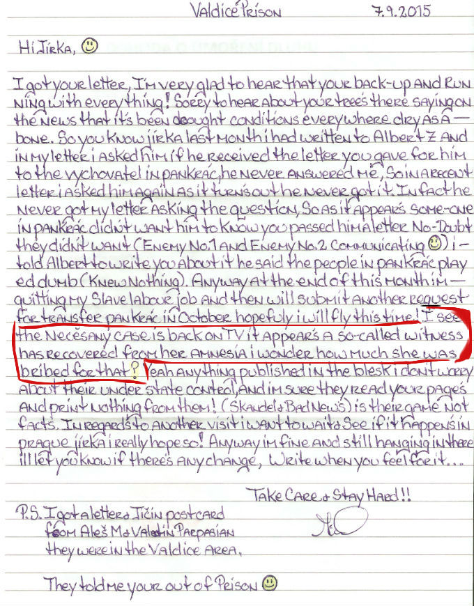 Myslí si totéž - viz jeho dopis : "Tzv. svědkyně - kolik jí za to asi slíbili ... ?"