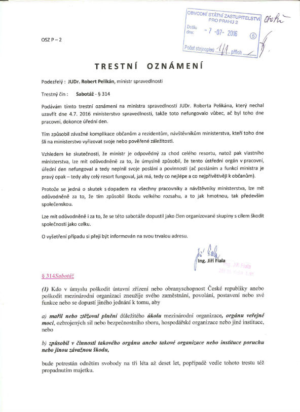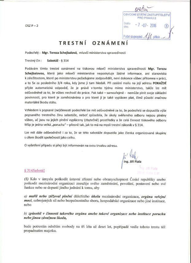 A pro tu jsme také podali trestní oznámení - místně příslušnému státnímu zastupitelství na Praze 2 - a velice se těšíme na jeho vyšetření, a zejména pak výsledek.