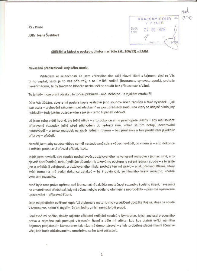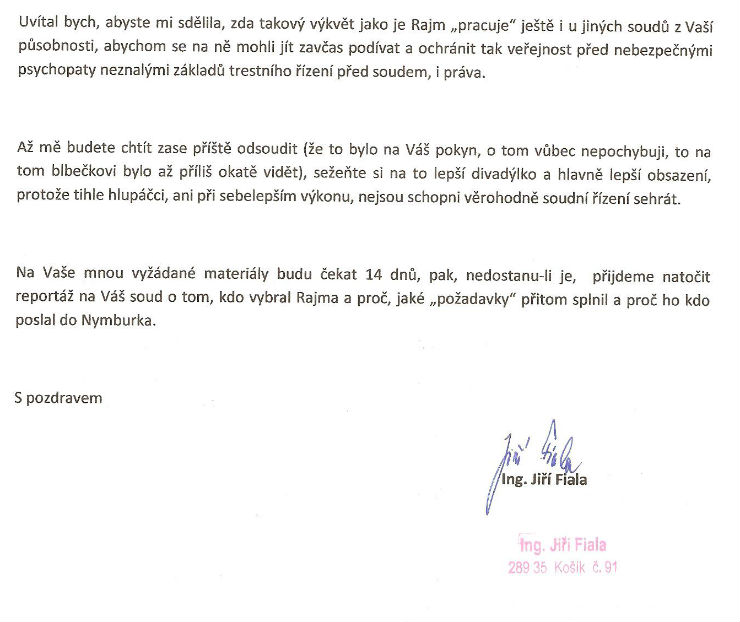 Děsivé neznalosti a neschopnosti, které Rajm u soudu předvádí, mu spolehlivě zabraňují vykonávat funkci soudce vůbec, natož v ní někoho kontrolovat, vést nebo být příkladem pro ostatní.