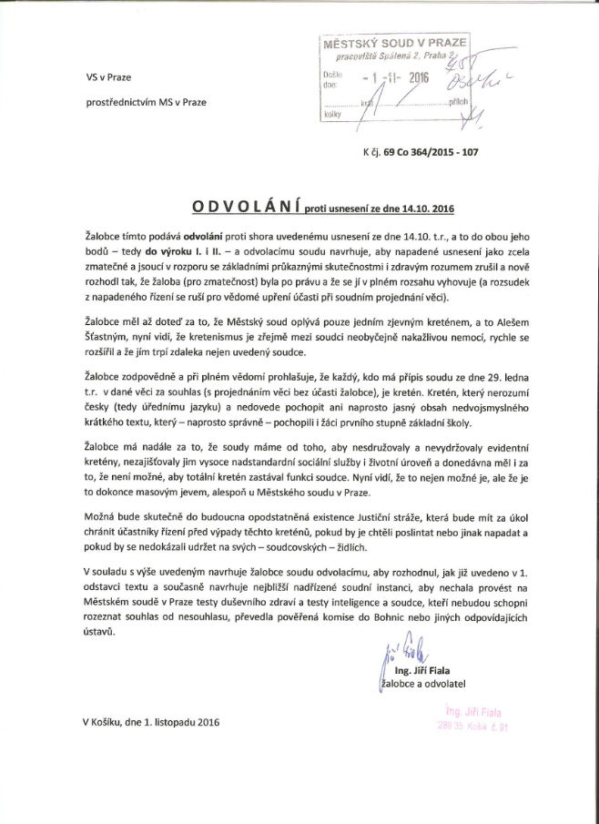 Takoví ovšem - budete se možná divit - masově soudí na Městském soudě v Praze...