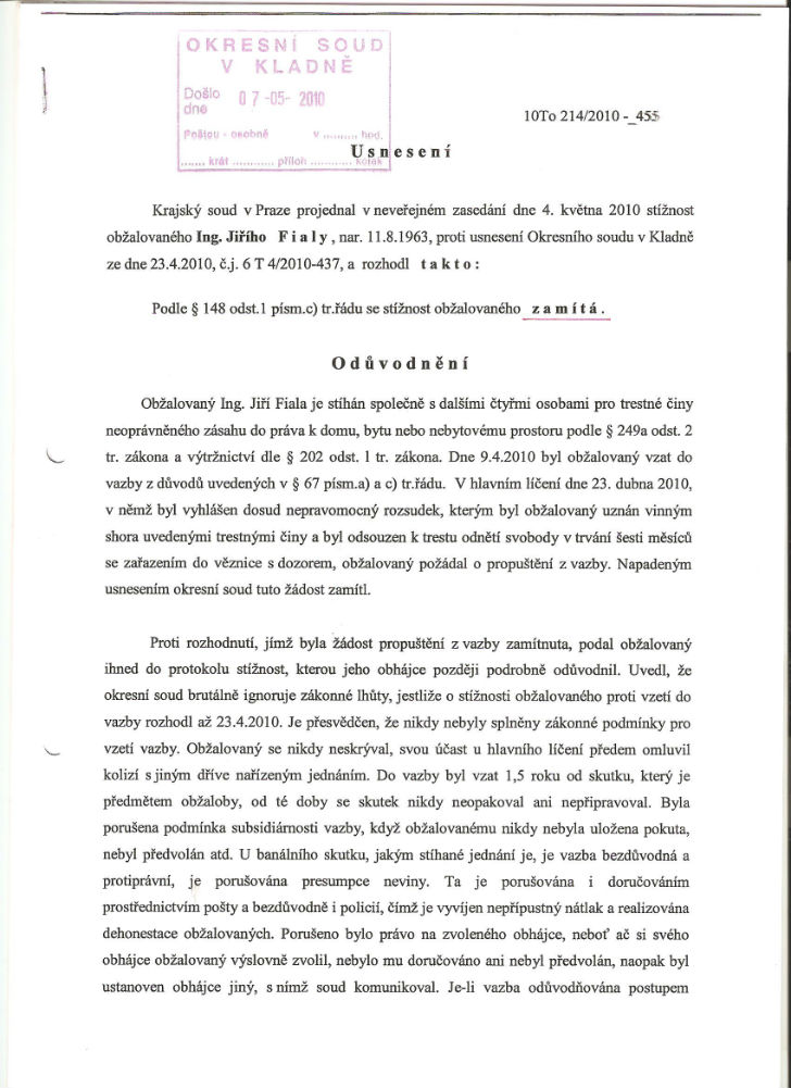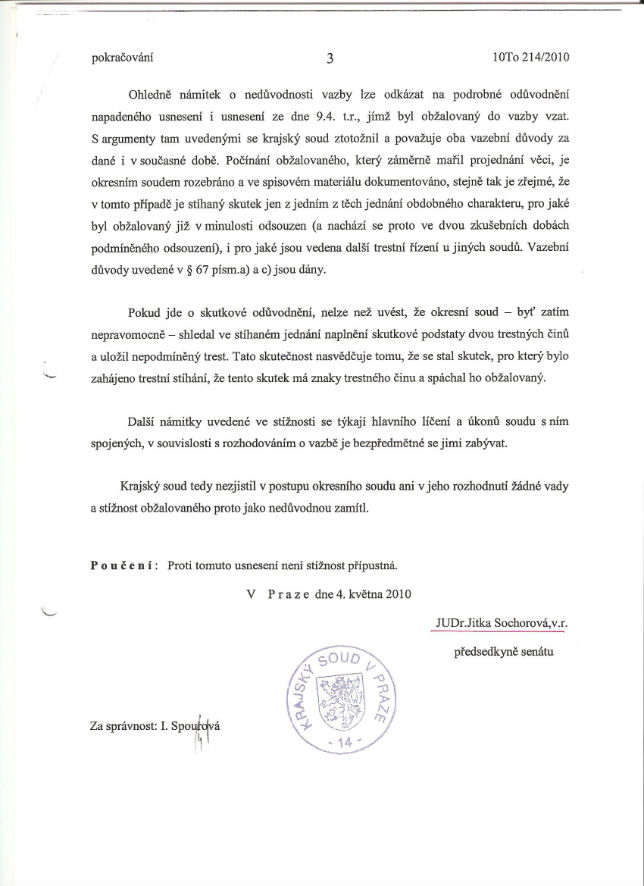- Usnesení č.j. 10 To 214/2010-455 ze 4.5. 2010
