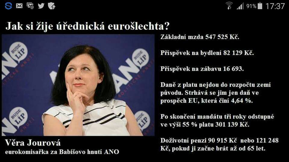 Taky za to požaduje luxusní služby - a co mu Jourová z Bruselu přihraje, to jistě stojí za stonásobky toho, co ho stojí...
