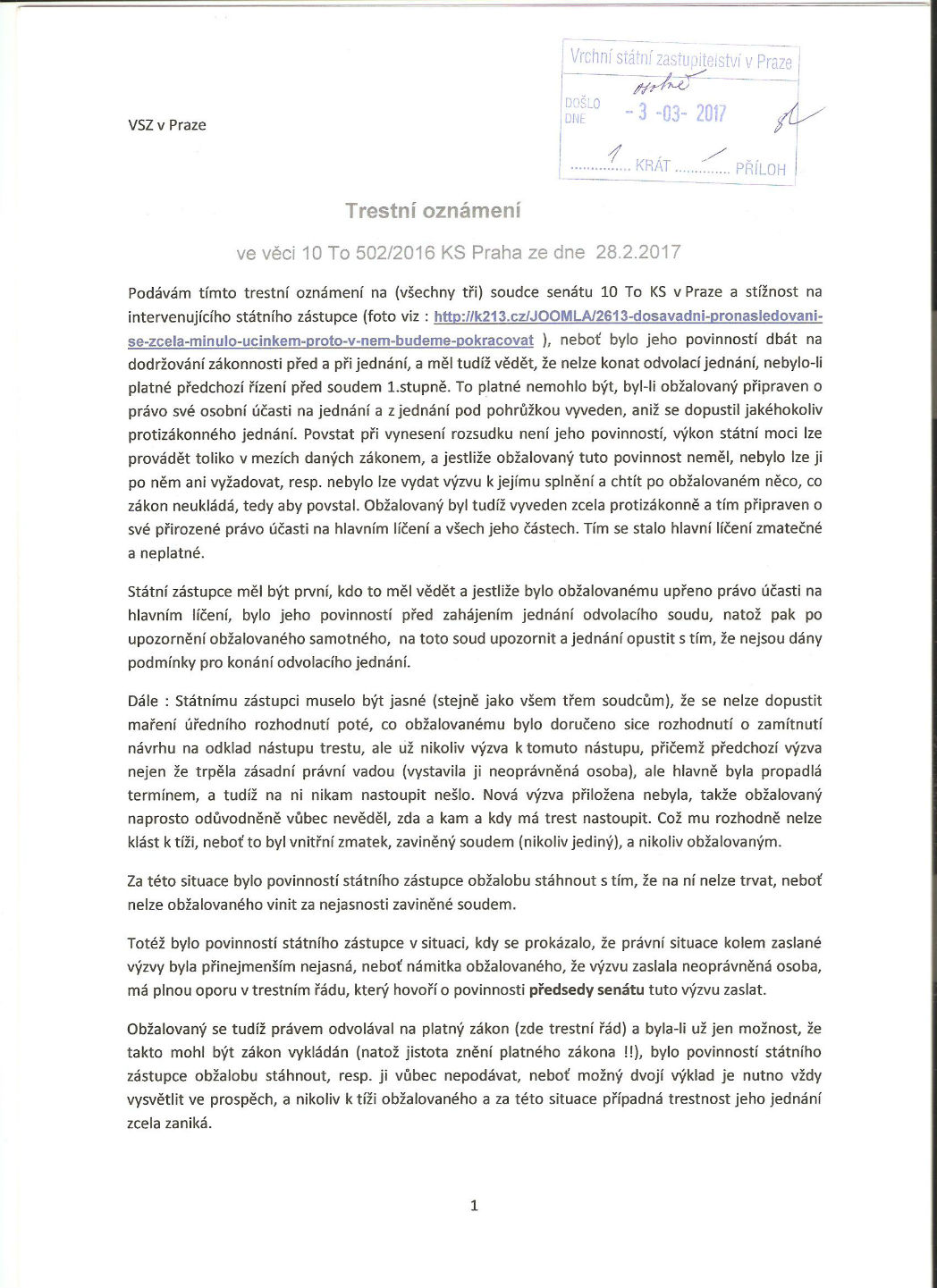 II. To, co je vytýkáno státnímu zástupci jako kárné provinění, je nutno u všech tří soudců senátu 10 To (Romana Lady, Jitky Sochorové a Heleny Rudé) již považovat za zjevnou trestnou činnost zneužití pravomoci úřední osoby k překrucování práva, neboť není myslitelné, aby všichni tři byli takto hloupí, že by tohle všechno nevěděli - a bylo jejich povinností trestní řízení zastavit nebo věc vrátit soudu 1. stupně se závaznými pokyny v témže duchu.