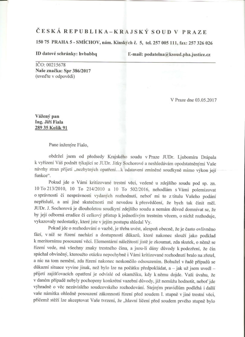 Mimochodem, co pan předseda soudu ? Ten na podněty neodpovídá ? Je na nezaslouženém odpočinku ? Chápu, že odpočívat za 200 tisíc měsíčně by se líbilo kde komu – kromě těch, co mají „služeb“ soudu používat.