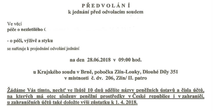 Reakce otce ročního dítěte (!!) na požadavek soudkyně odvolacího soudu ve Zlíně :