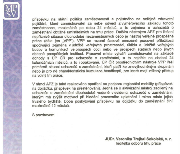MPSV, i Úřadu práce to bylo samozřejmě jedno.