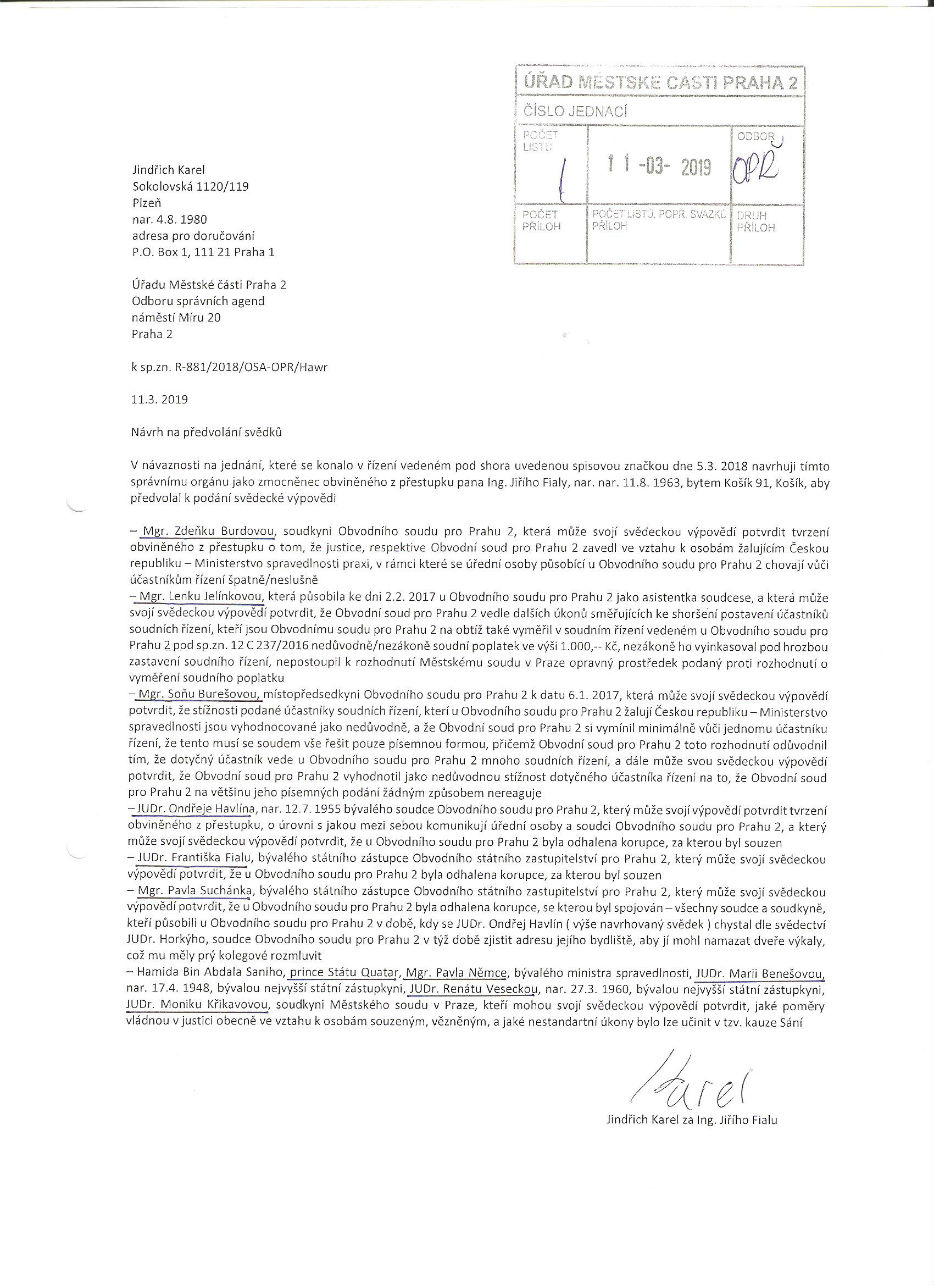 Co myslíte, vyslechneme Sáního ? Ohledně toho, jak byl vydán do Qataru ? Anebo ostatní soudce na Praze 2 ohledně jejich dalších praktik, nepřiznávání osvobození od poplatků, zamítání návrhů na dokazování jedním šmahem, vynášení předem hotových rozsudků bez důkazů a šikanování účastníků řízení ?