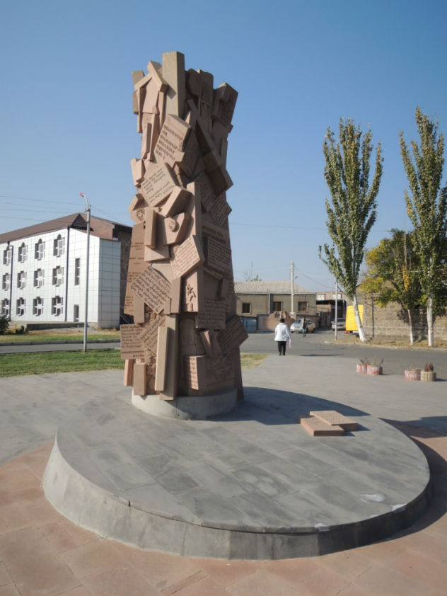 A když už jsme u té karabašské války - sem patří ještě jedna fotka, byť až z další reportáže - protože je z Edžmiatsinu - a sice : Památník dopisů z fronty, co psali vojáci svým blízkým...