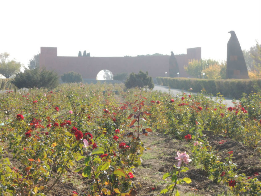 Tak to už je ten růžový sad - s hlídacími orly, jako tady u památníků všude.