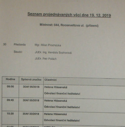 Jednání soudu dnes sledoval i štáb ČT v podání brněnské redaktorky Dominiky Řebíkové. Z toho, co slyšela o justici, i z toho, co přímo viděla na vlastní oči, byla značně překvapena. Z jejích reakcí ale bylo vidět, že o justici toho mnoho neví, o jejím skutečném stavu už vůbec ne - a žije v obláčcích, kde ji drží oficiální neznalost a pohádky šířené ČT . Věřím proto, že i pro ni bylo dnešní jednání soudu dvojnásob užitečné.
