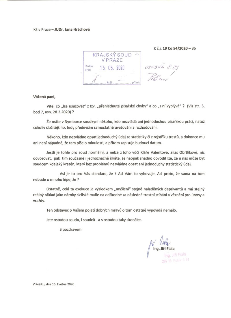 A teď se ještě podívejme, kdo je ona skvělá a fenomenální písařka s platem soudkyně... A proč jí jde právě tento senát Krajského soudu tak skvěle na ruku.