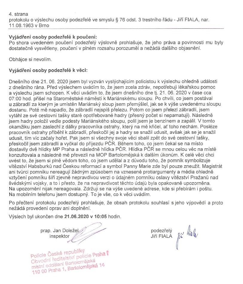 Pak se mnou sepsali všechny ty protokoly - o předání věci, o zabavení věci - to byly ty sirky a láhev se zbytkem benzinu (byl jsem mimochodem moc rád, že mi to nebouchlo v ruce - proto říkám - požehnaná akce, bez toho by to dopadlo úplně jinak...)