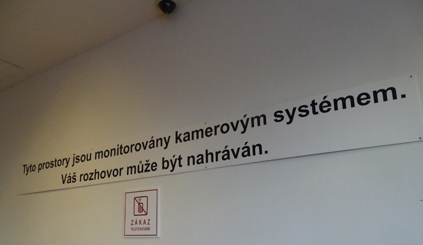 Vlídná cedule, vítající návštěvníky soudu... Zajímavé, že jindy mají soudy problém nahrávat jednání i přesto, že je o to požádáte. Ale nahrávat, co si říká obecenstvo - tak to je velmi zajímá... I když bych doporučoval, aby to ve vlastním zájmu raději neposlouchali...