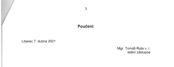 Konečně se mi dostalo do rukou (Vaše) usnesení, ze dne 7. dubna 2021, které mělo být zasláno v prvé řadě mně osobně.