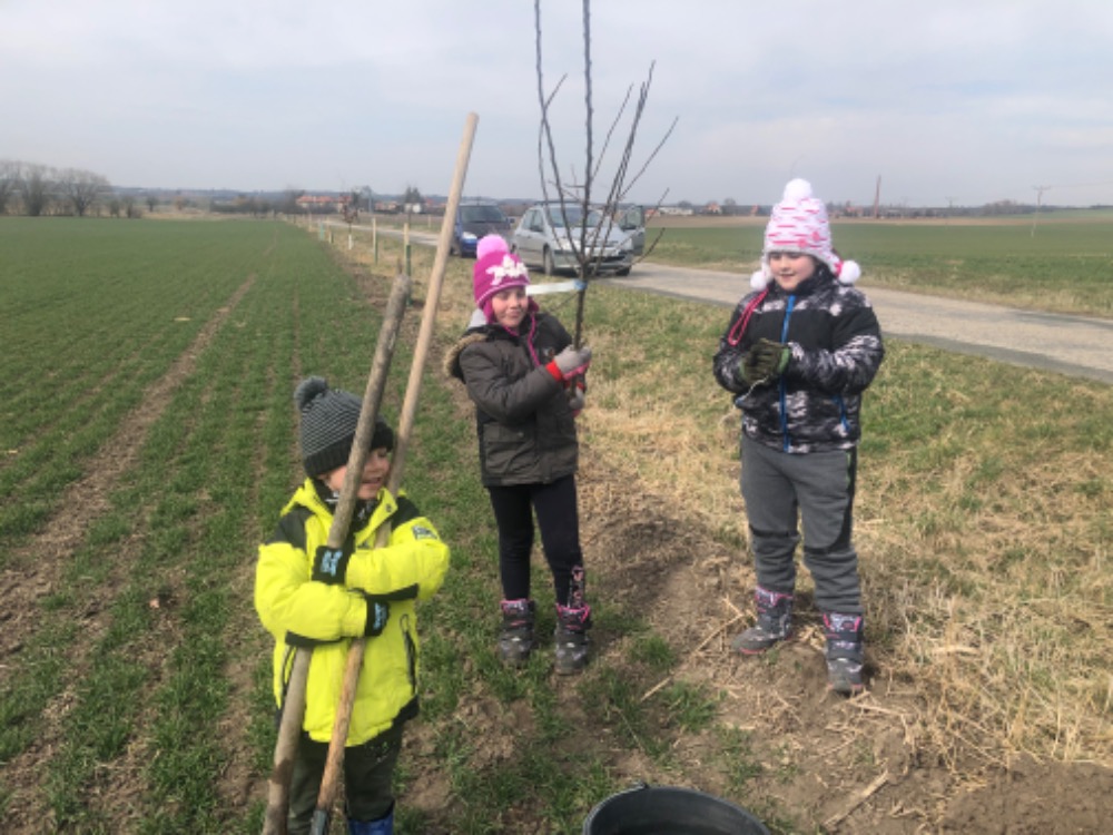 Další stovky metrů alejí vysázelo o víkendu naše sdružení.