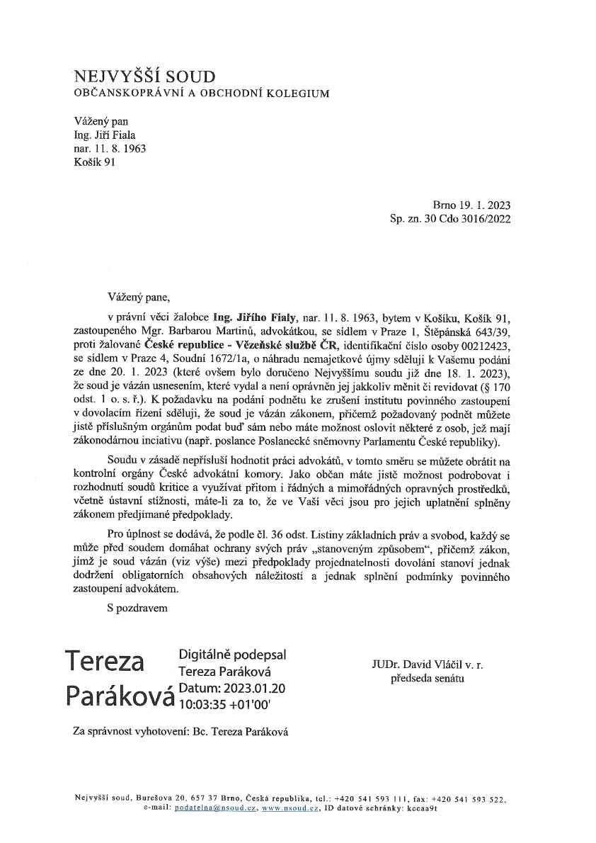 Jak sám jistě vidíte, z Vašeho vlastního vyjádření (viz Vaše usnesení ze dne 29.11. 2022), povinné zastoupení advokátem bylo naprosto k ničemu, neboť nedokázalo splnit ani základní formality a požadavky na dovolání, stanovené soudem, jak sám uvádíte.