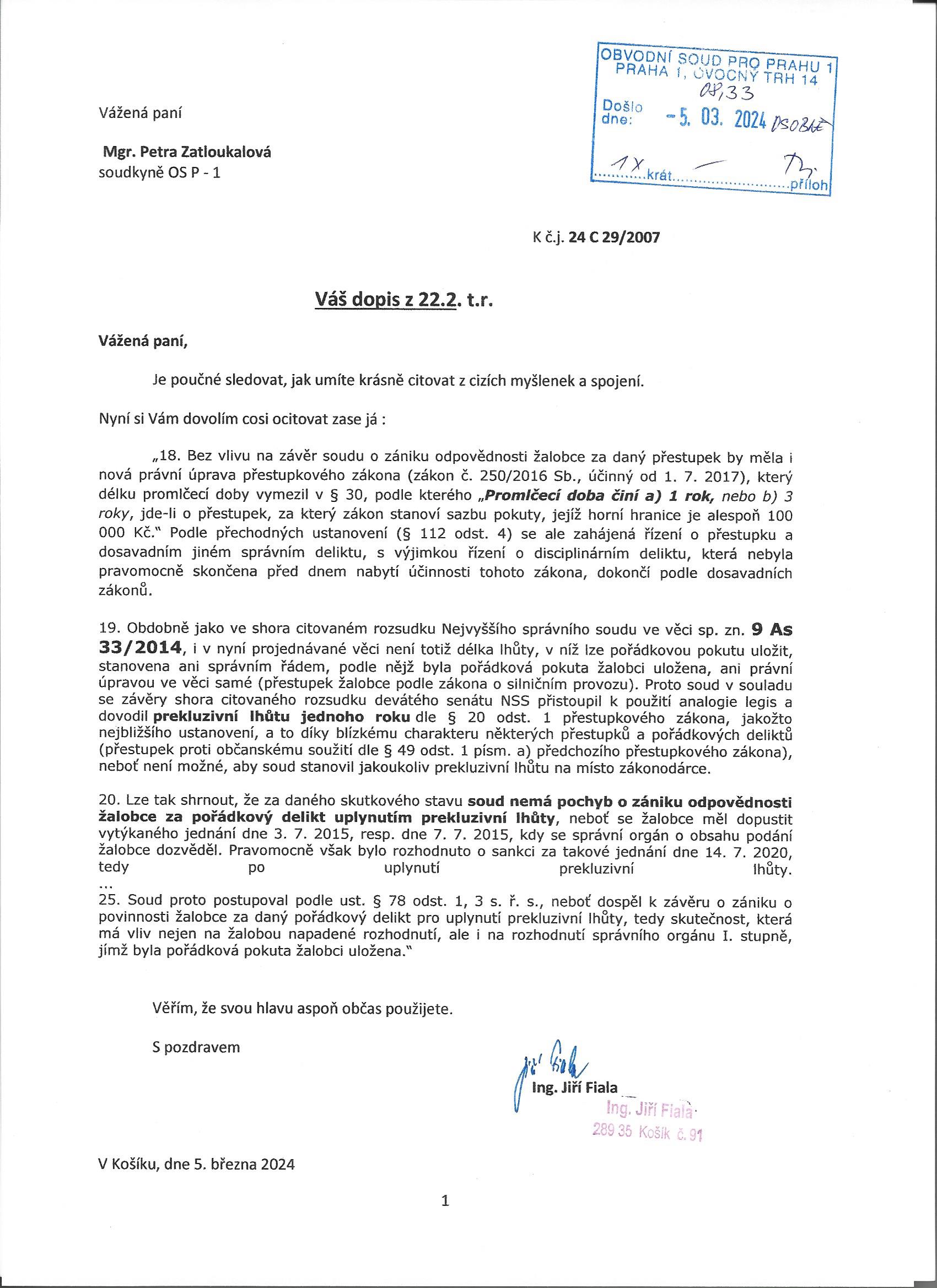 Napsala jste mi dva dopisy, v prvním bylo konstatování dávno známého (č.j. a výše pokuty) bez jakéhokoliv obsažného sdělení, ve druhém je citát výkladu předpisu.