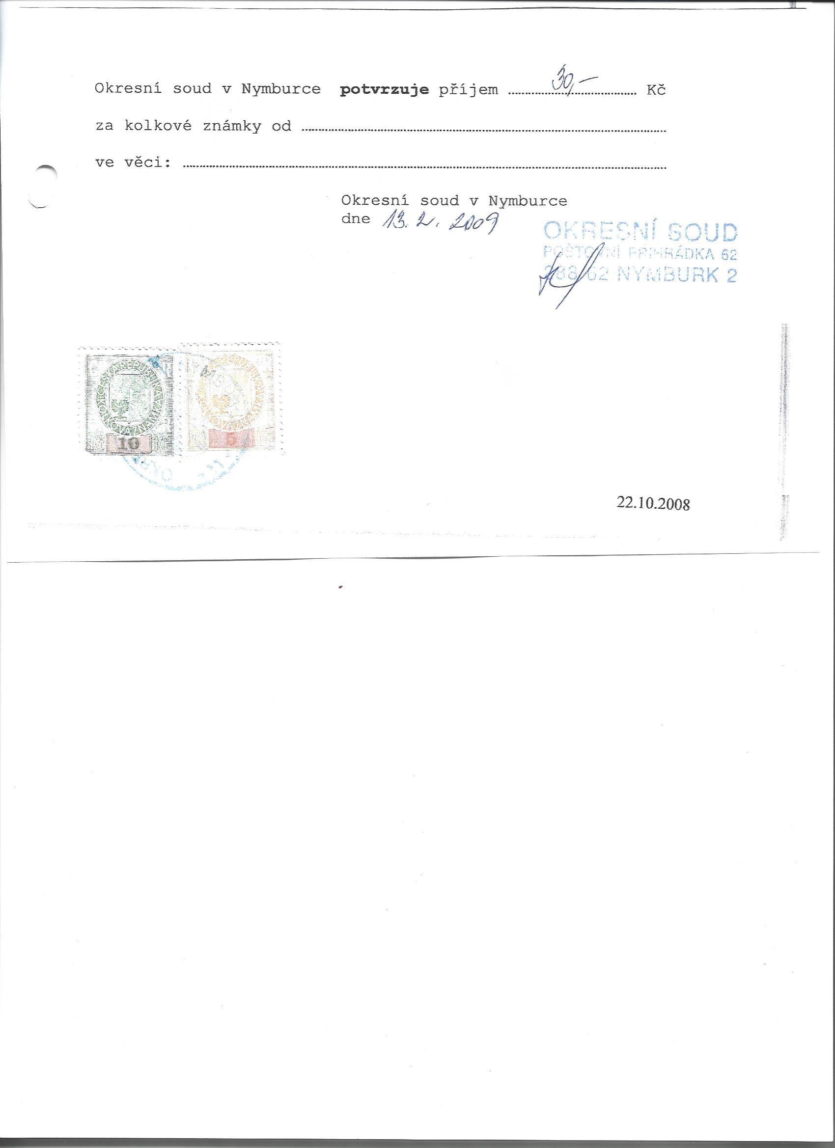 Ověřená soudní kopie z r. 2009 - a poplatek za dvě strany.