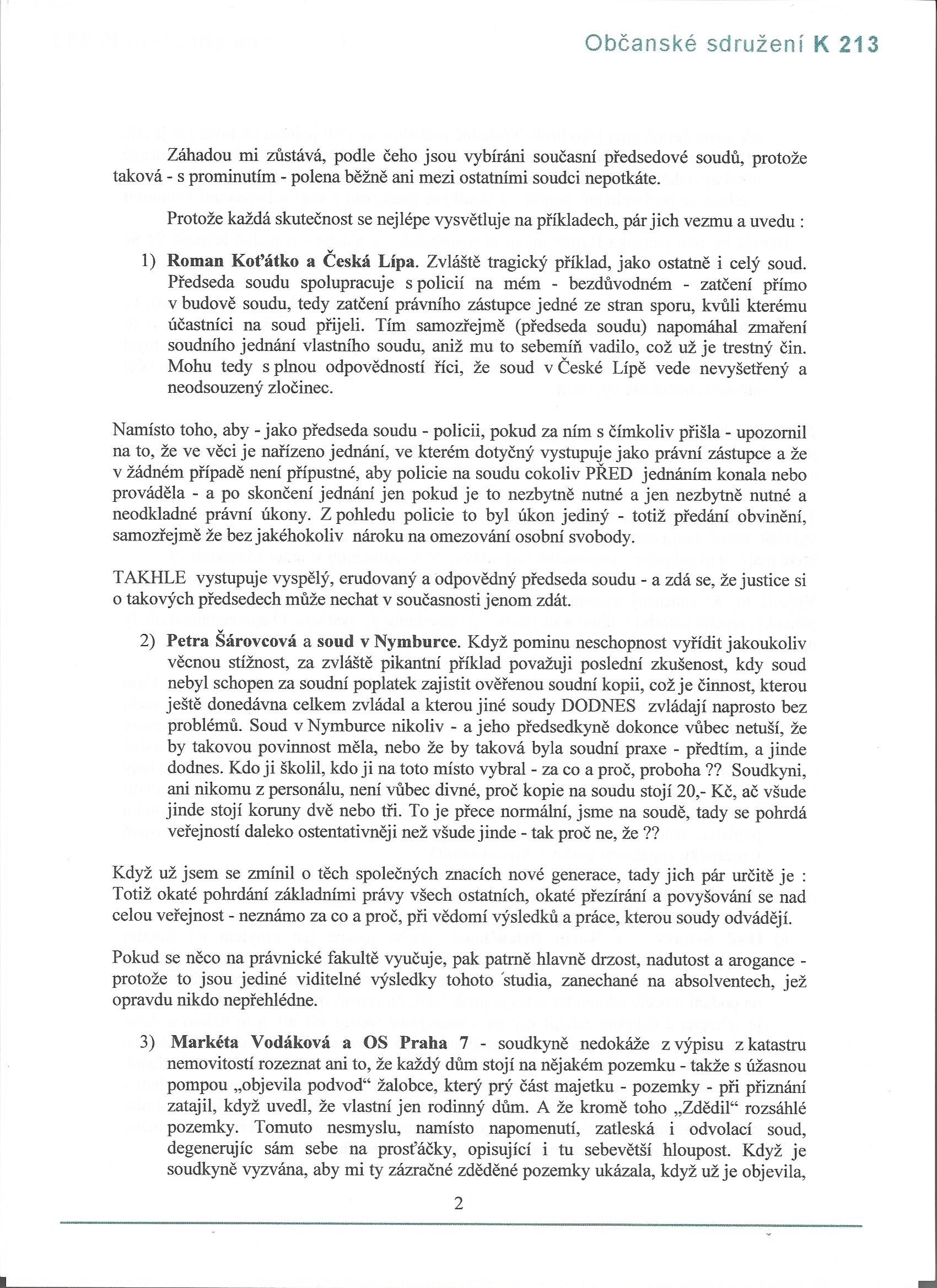 Takže já za tím, že to nefunguje, nevidím pouze jen osobní zlovolnost či tupost těch rozhodujících soudních osob, ale i ten celý pokřivený systém, prostý jakékoli kontroly zvenčí, resp. kontrola je jen iluzorní. Jejich kleintelismus, stavovskou soudržnost a sounáležitost...