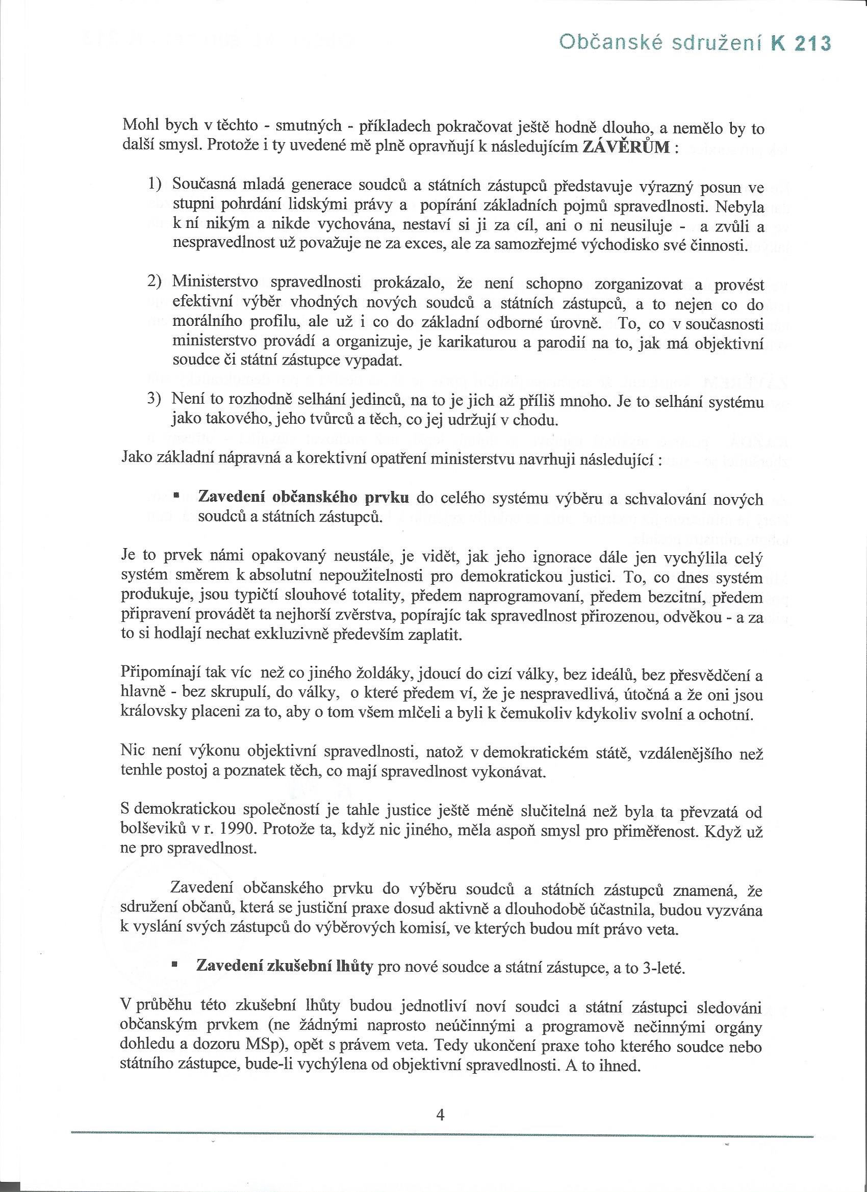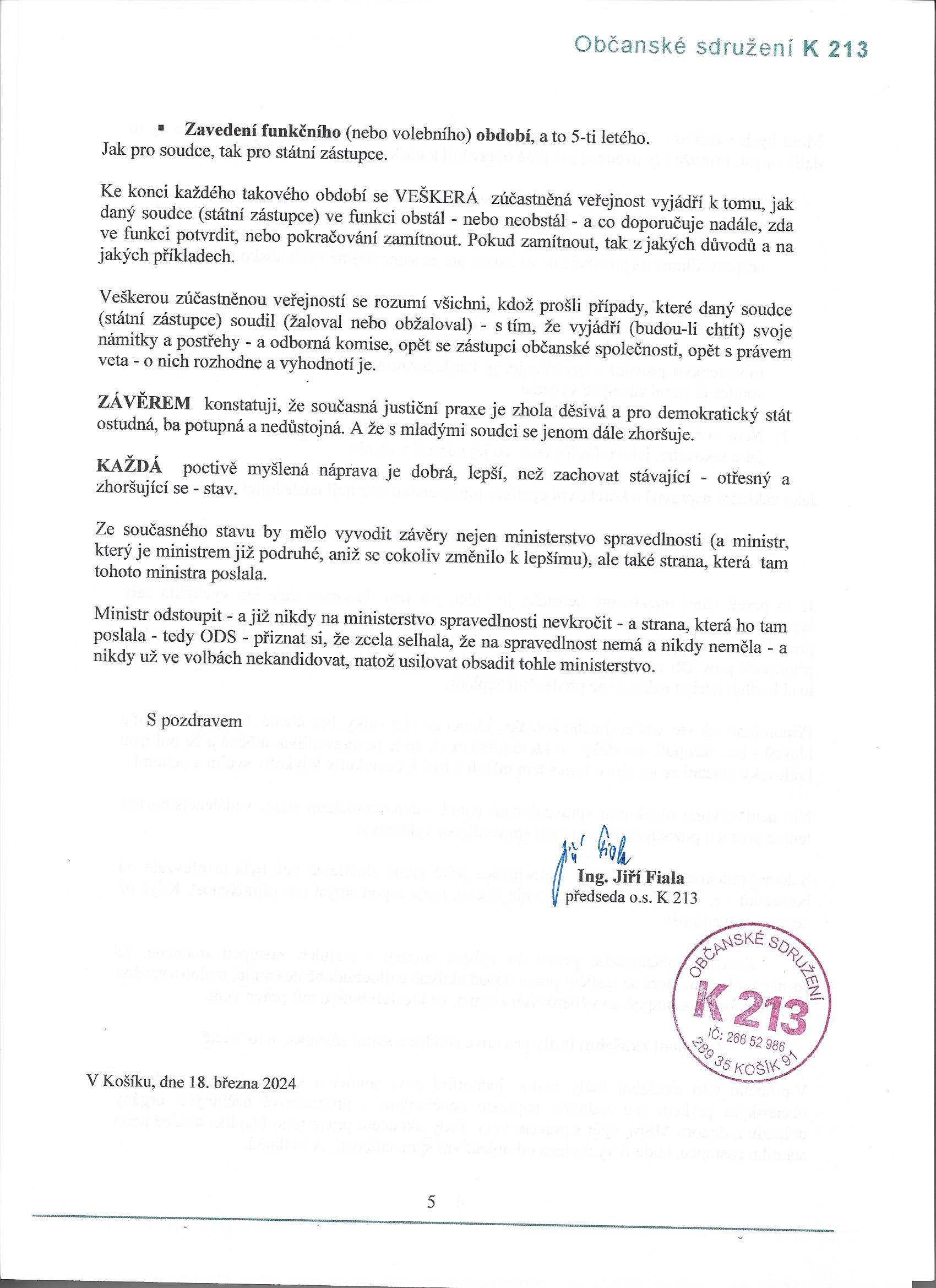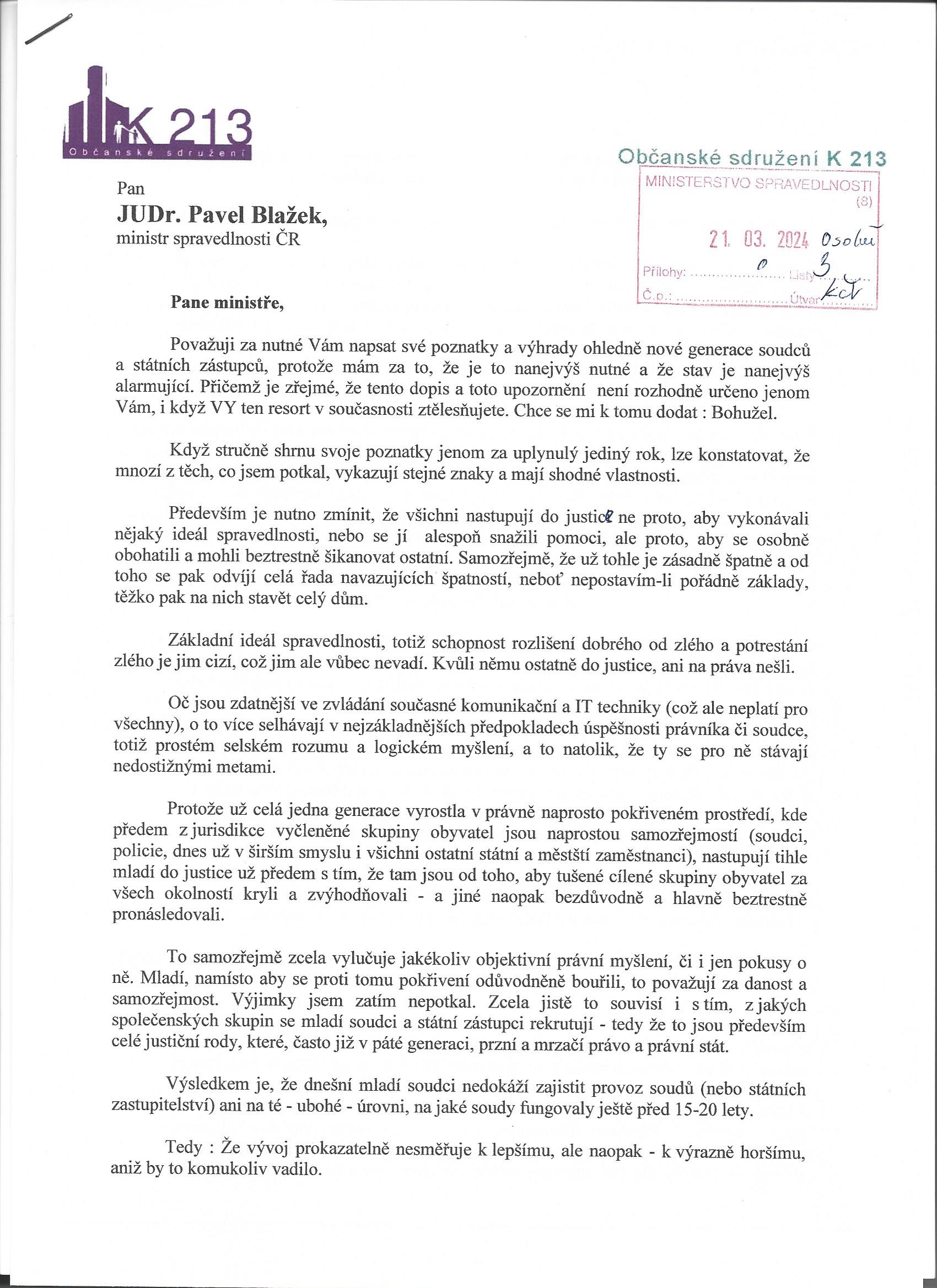 Dopis ministerstvu (a ministru) spravedlnosti.
