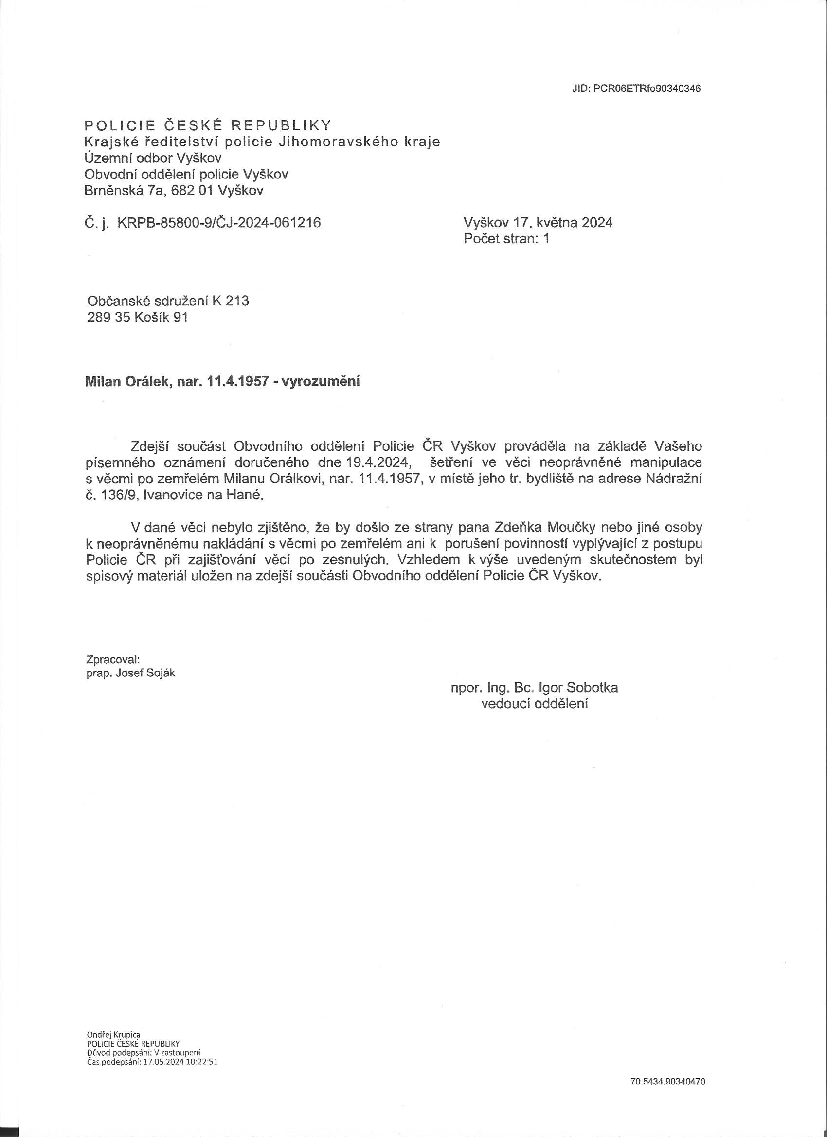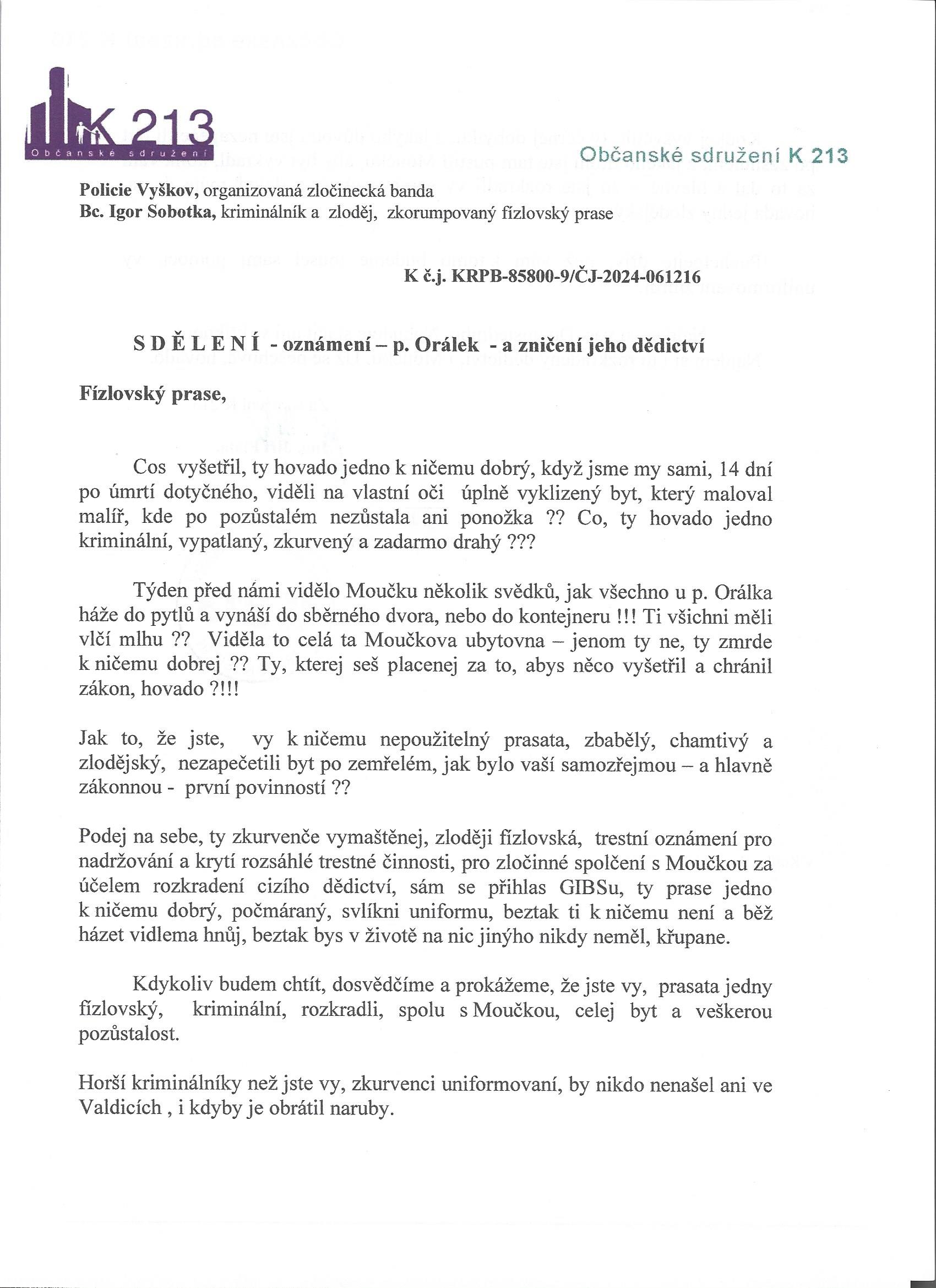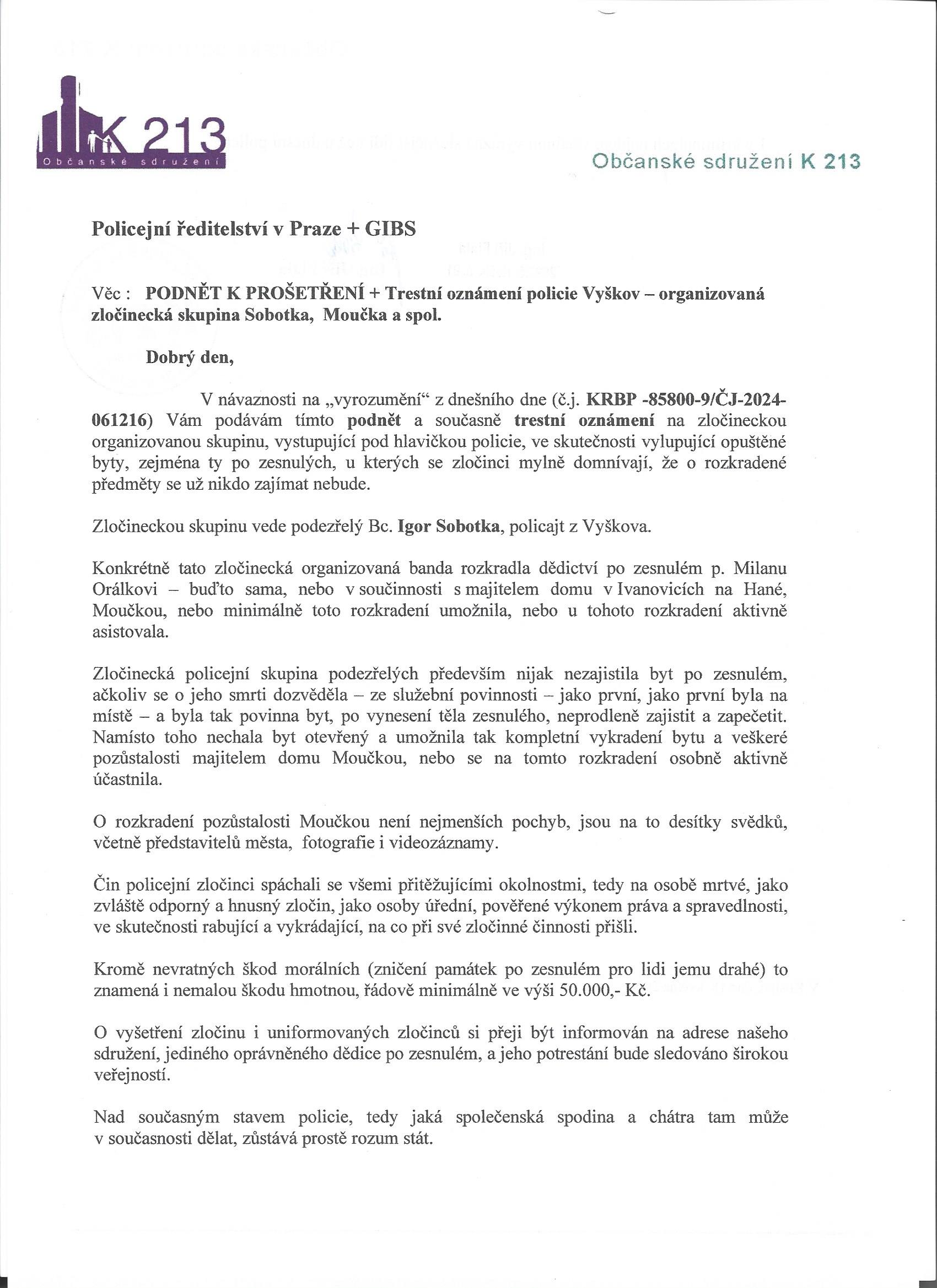 Fízlovské hyeny nejen že nezabezpečily byt zemřelého (můžeme se ptát, kolik za to dostaly), nejen že nečinně přihlížely tomu, jak si majitel domu - Moučka - ve velkém vykrádá, co se mu zlíbí a svévolně rozchvacuje cizí dědictví - ale dneska mají ještě tu neskutečnou drzost tvrdit, že se vlastně nic nestalo.