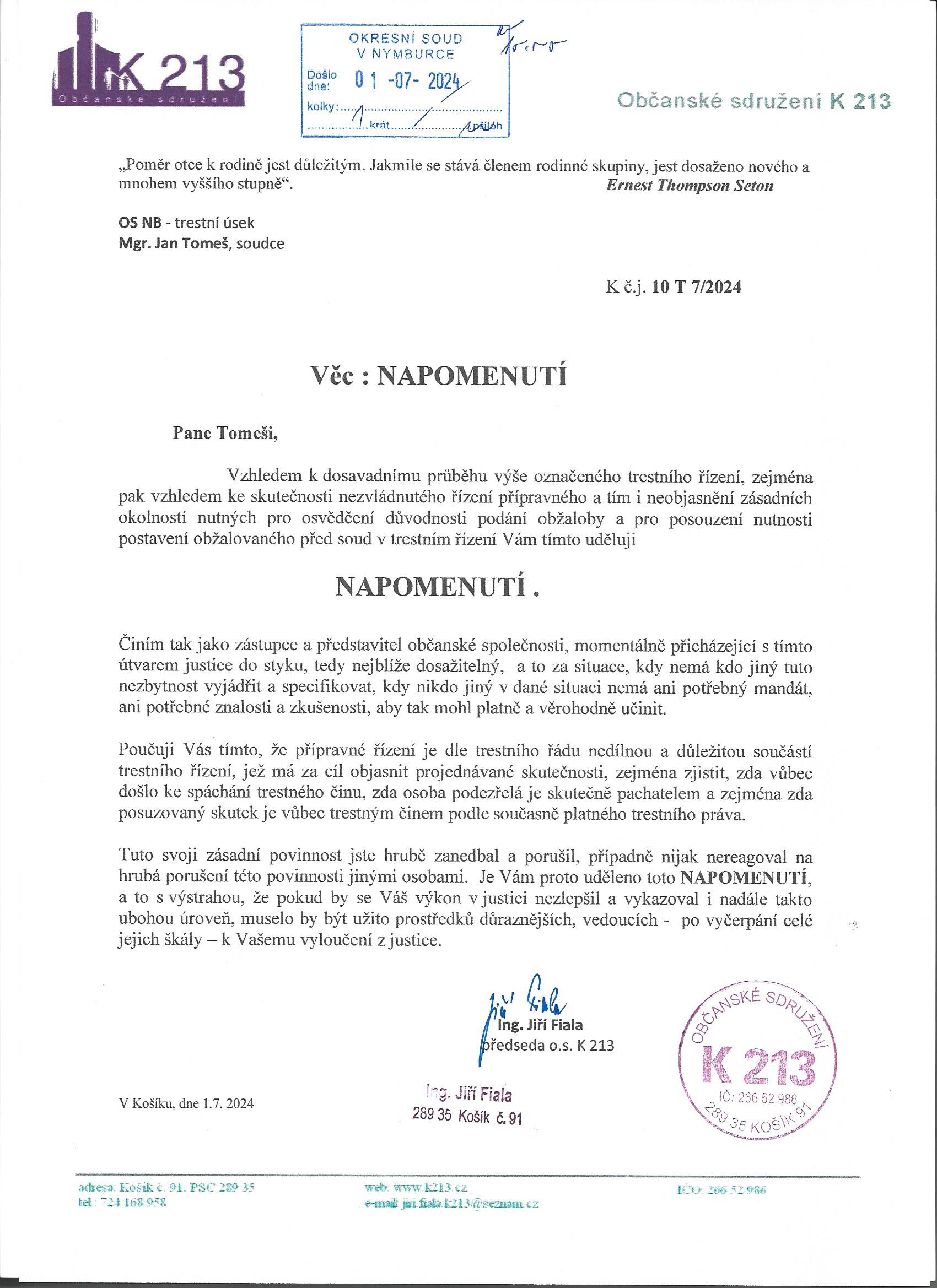 Už Vám napsal Tomeš, proč chtěl, abyste mu poslal těch 10 zprošťujících rozsudků?