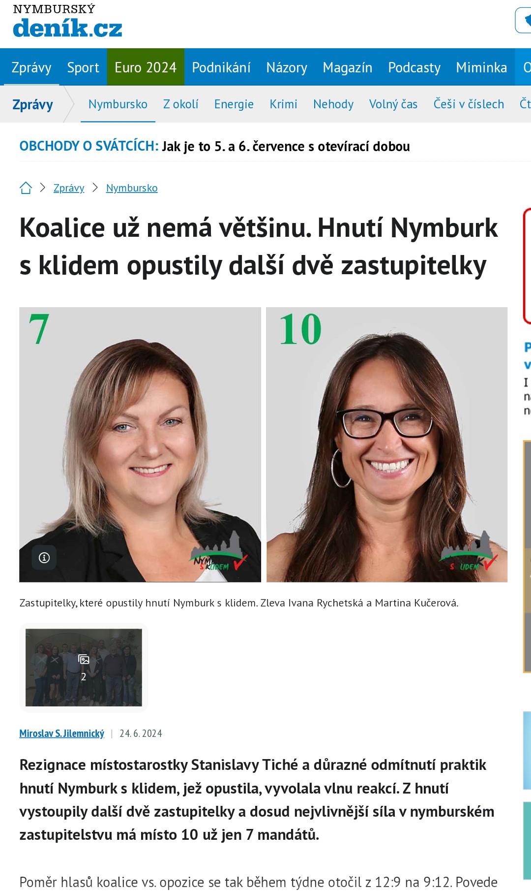 První, kdo pochopil, že nechce - spolu se starostou - do kriminálu, byla místostarostka Nymburka Stanislava Tichá, která v půlce června náhle resignovala.
