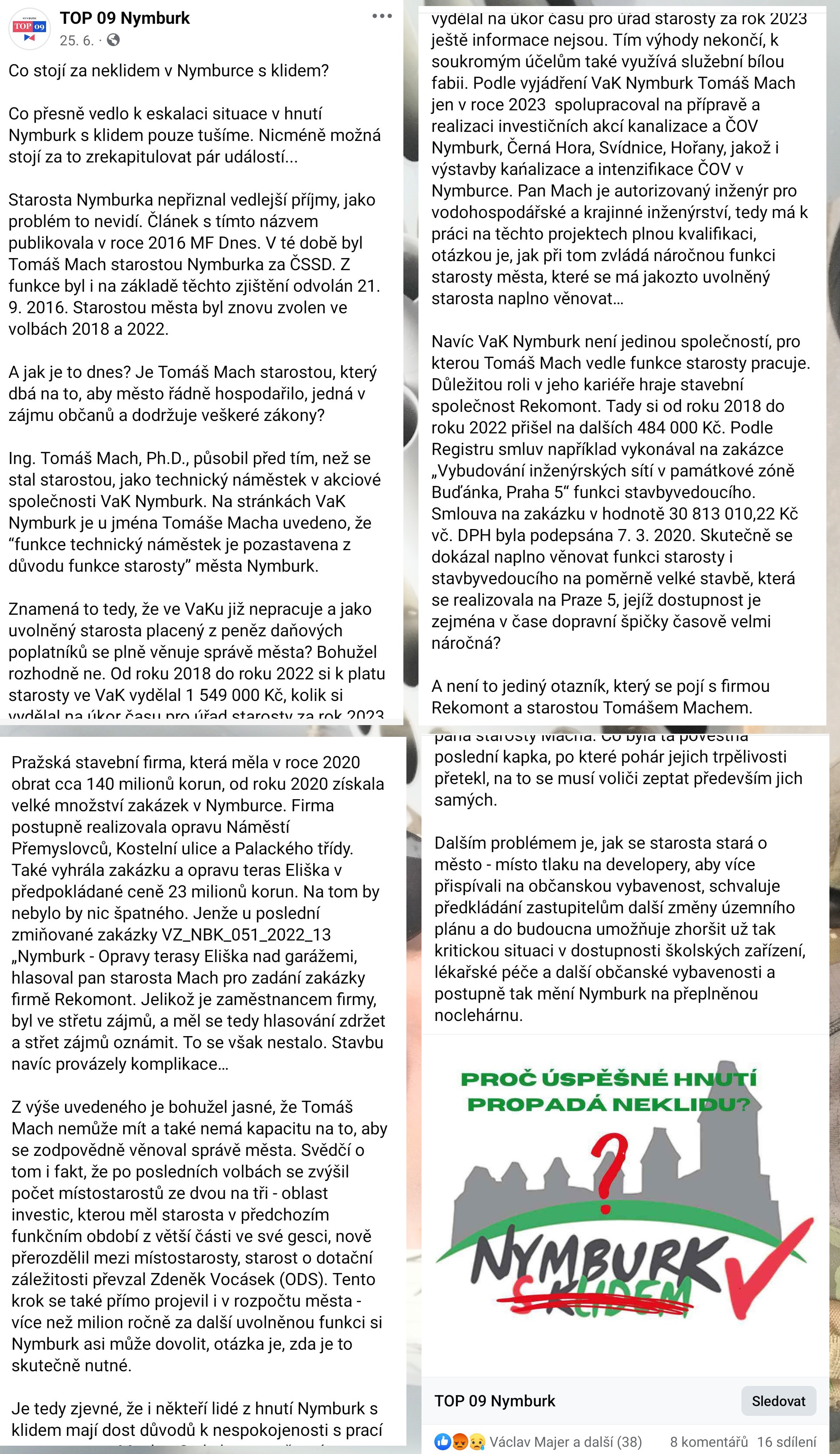 Nymburská Top 09 před nedávnem napsala:
