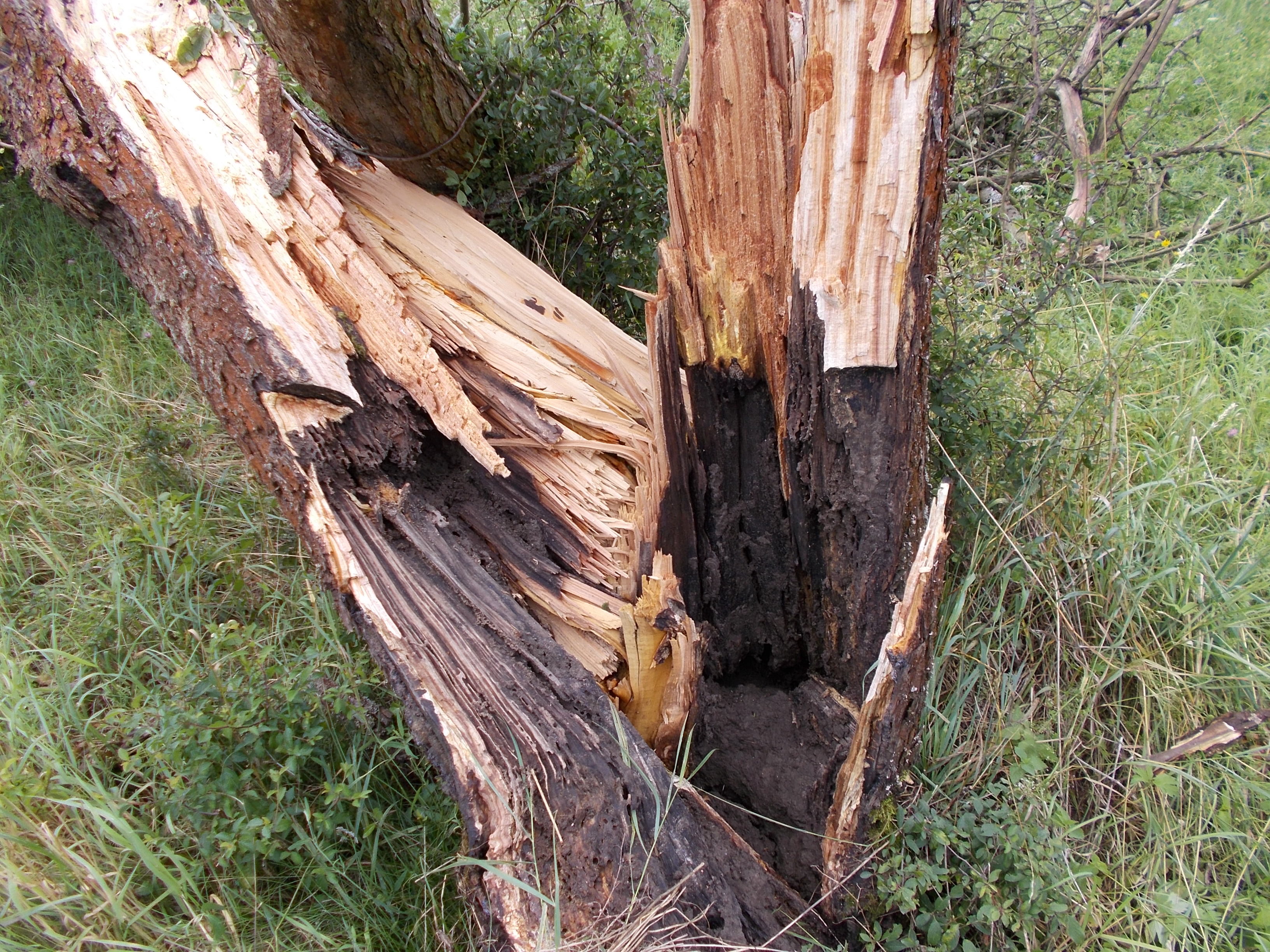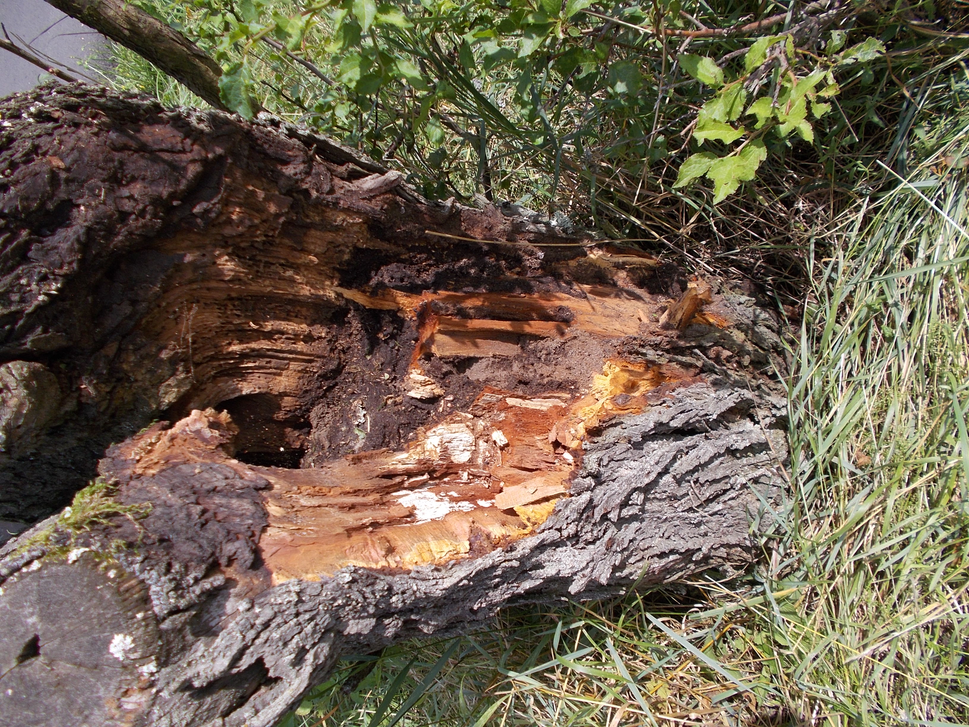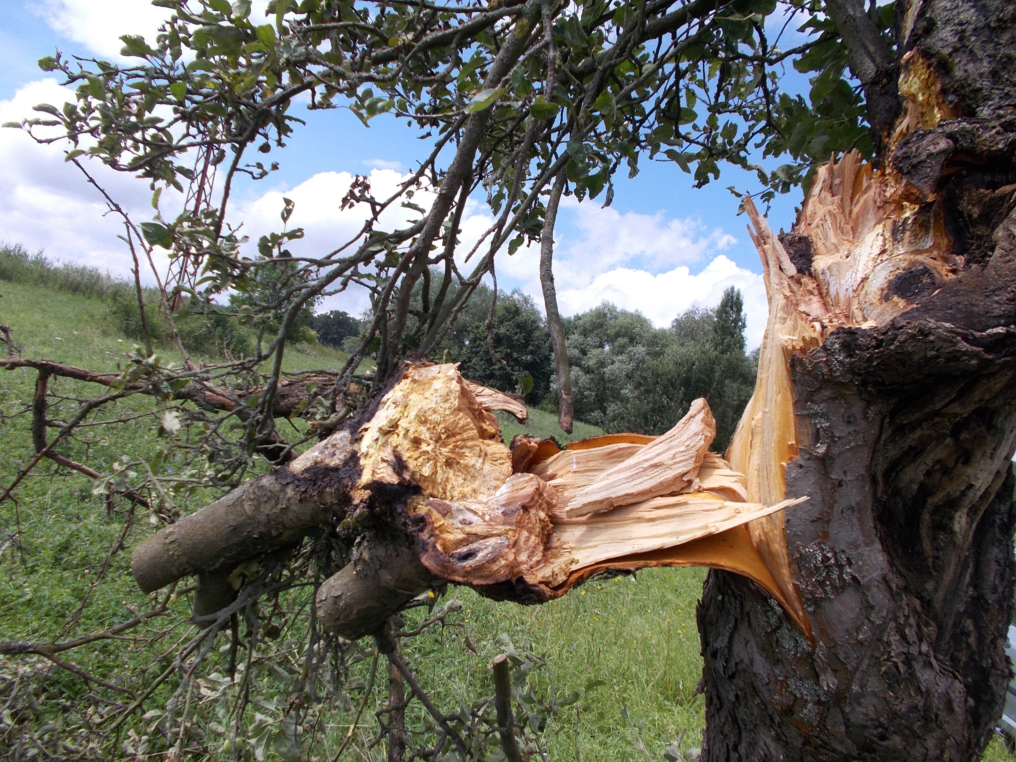 Ztrouchnivělý kmen pochopitelně nevydrží ani slabší náraz větru...