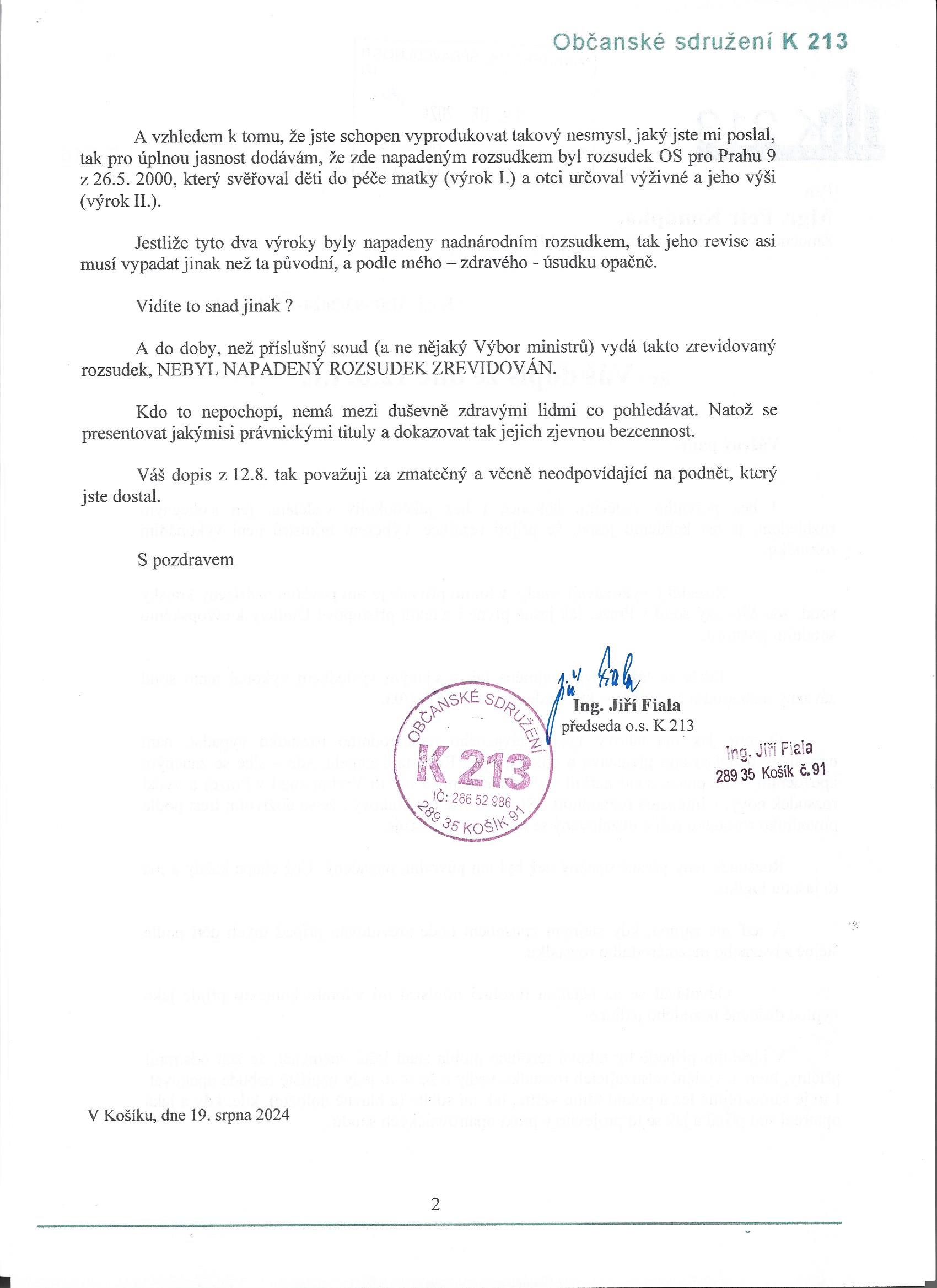 Váš dopis z 12.8. tak považuji za zmatečný a věcně neodpovídající na podnět, který jste dostal.