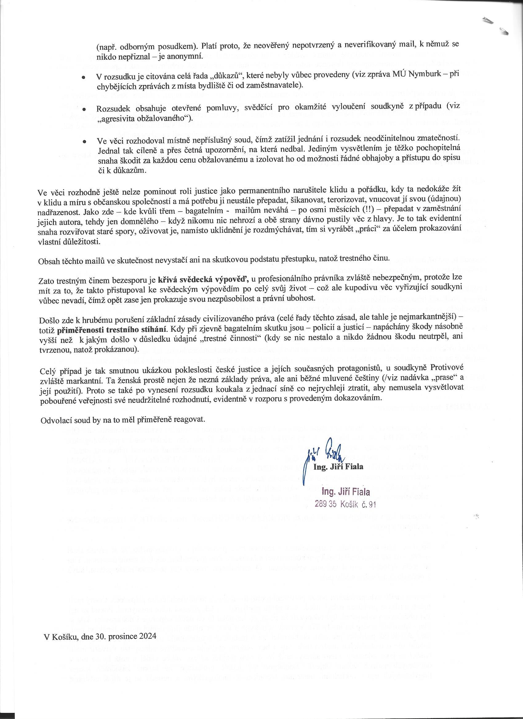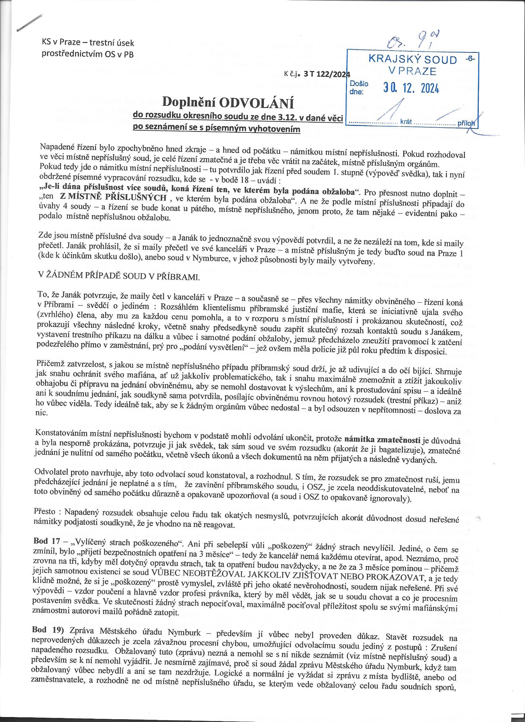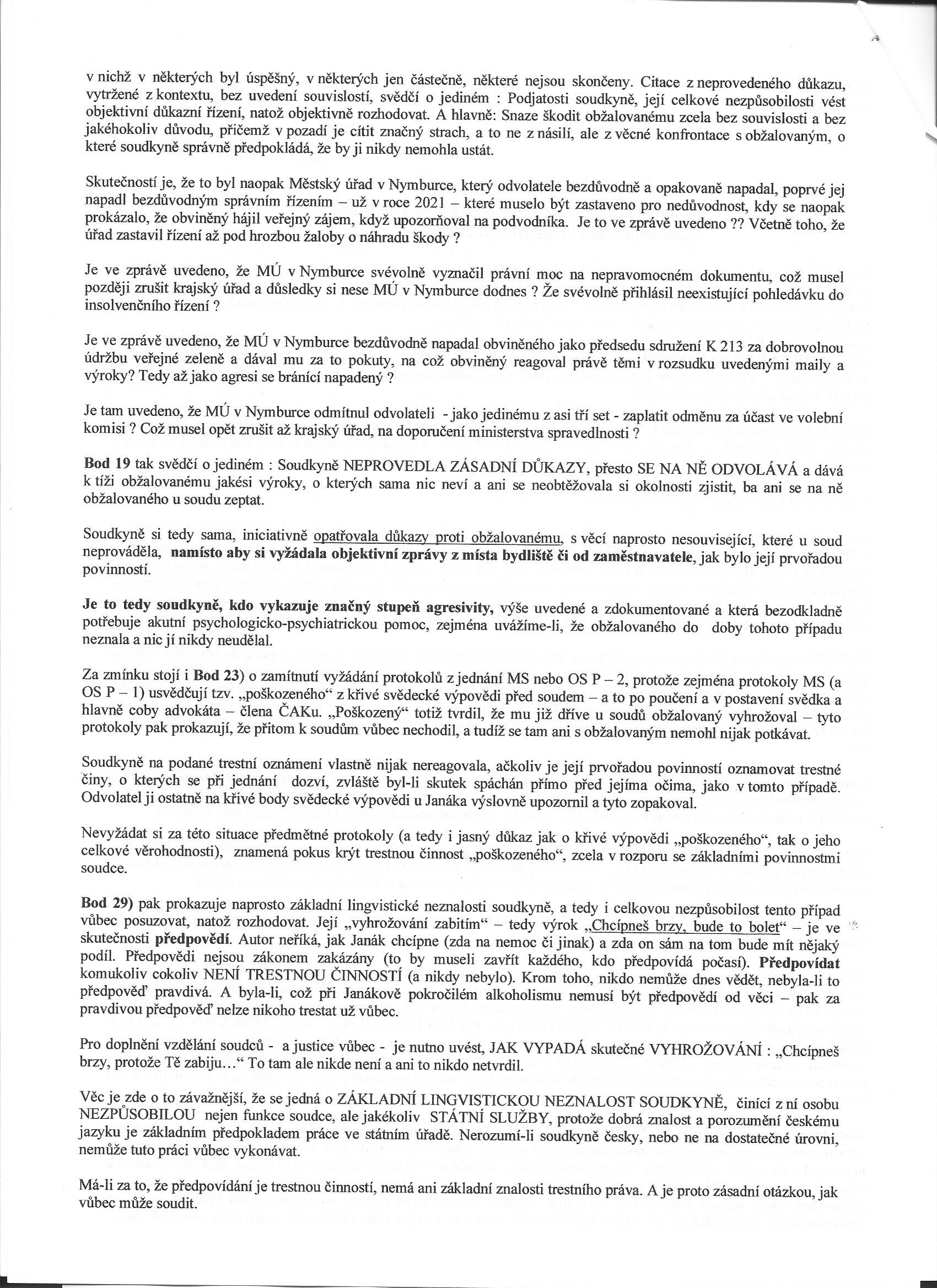 A tak si v rozsudku přečtete, že měl Janák prý odůvodněně strach, protože už jste mu - prý, kdysi - vyhrožovali... Nic takového se sice u soudu neprokázalo - ale blbka žádné důkazy přece nepotřebuje. Soudí jen tak od oka. Co si myslí a co se jí zdá nebo nezdá. To je rozhodující. Ne dokazování.