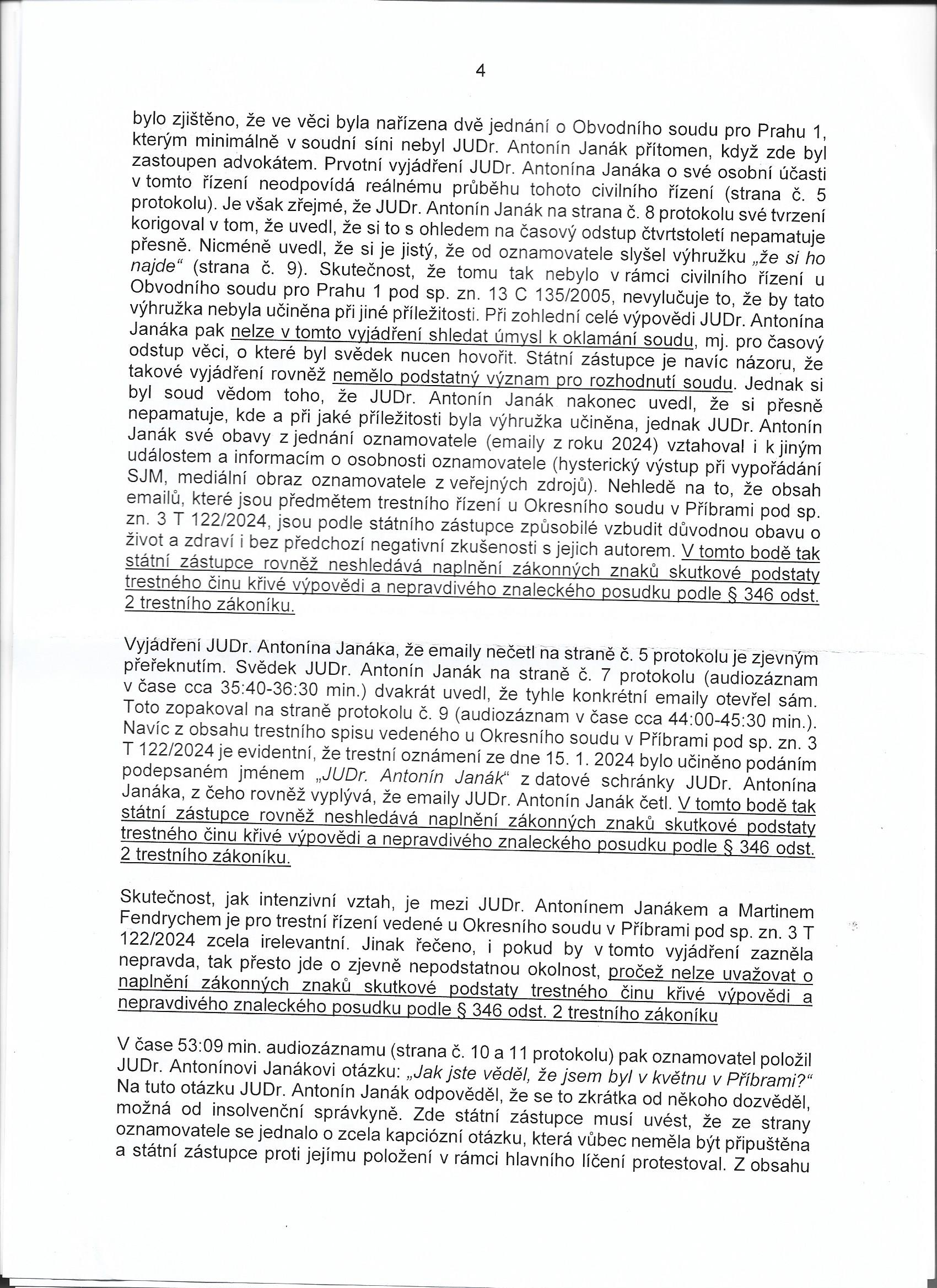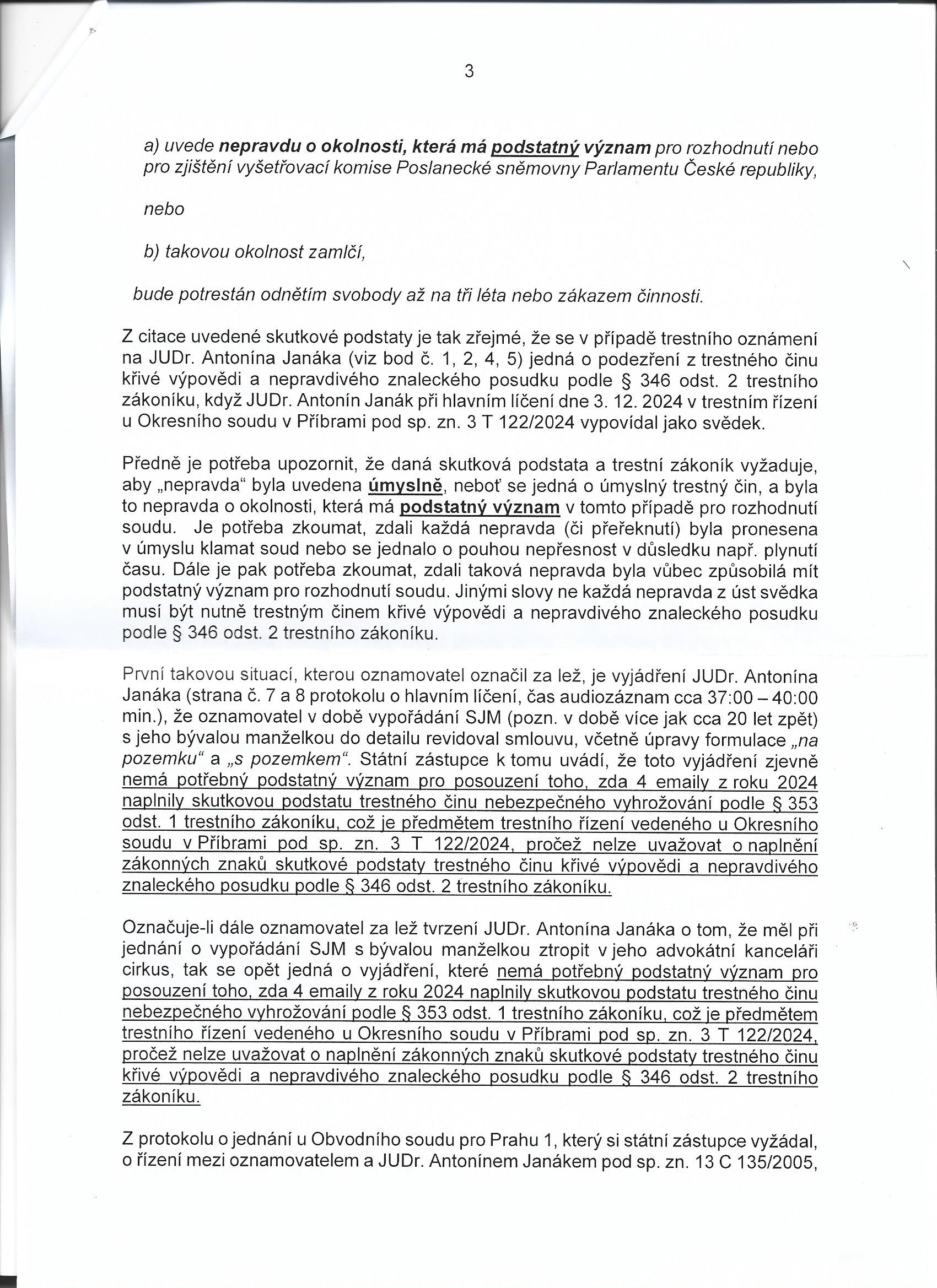 Ohledně Janákovy křivé svědecké výpovědi z 3.12. 2024 (a tedy TO podaného přímo do protokolu u soudního jednání) :